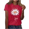 Camiseta de manga corta informal con estampado de flores de amor de AliExpress, nueva camiseta de dibujos animados de otoño para mujer europea y americana.