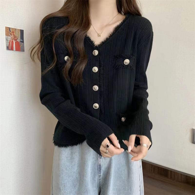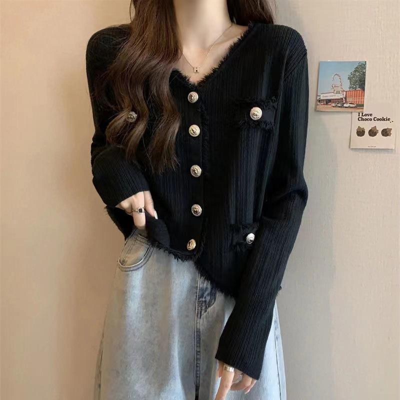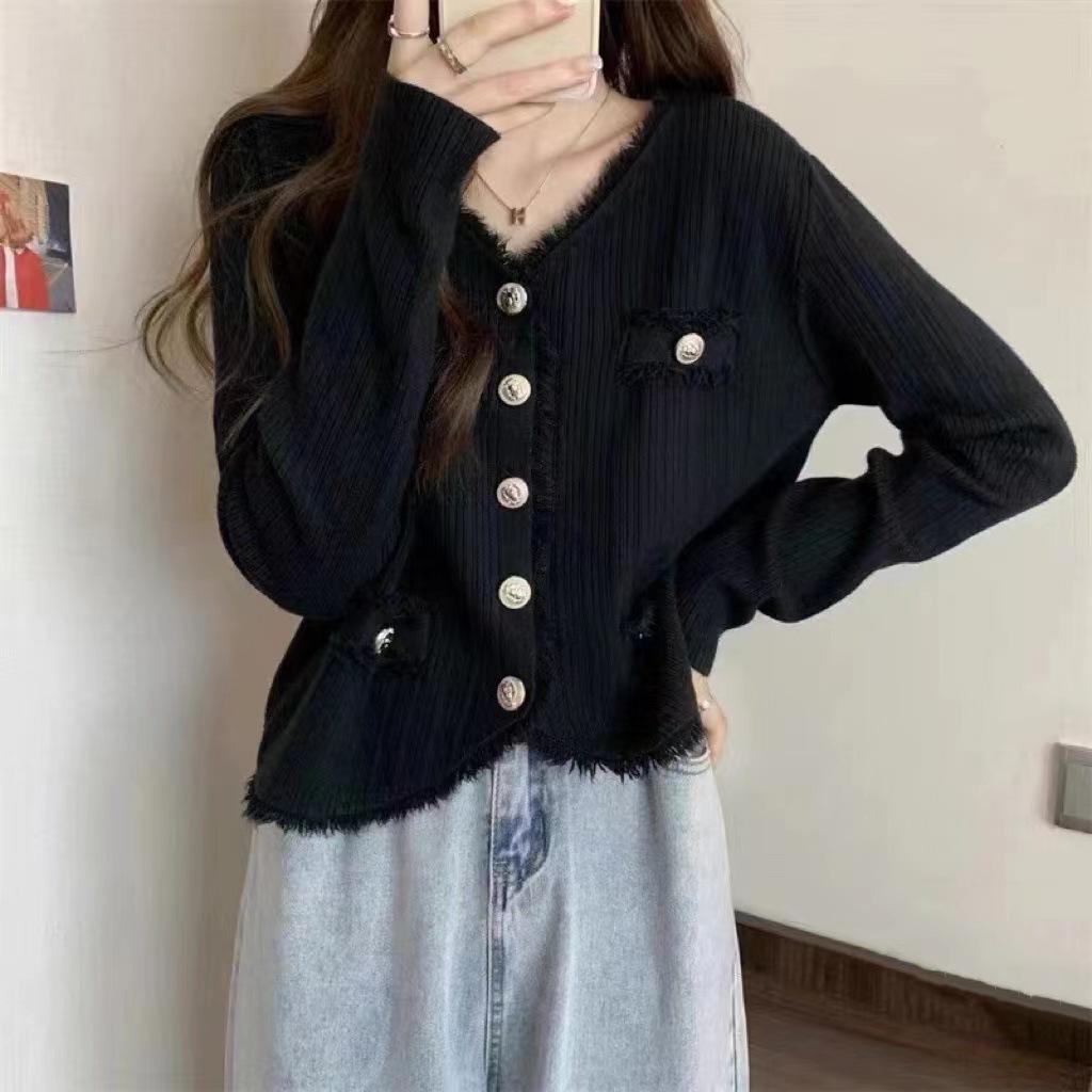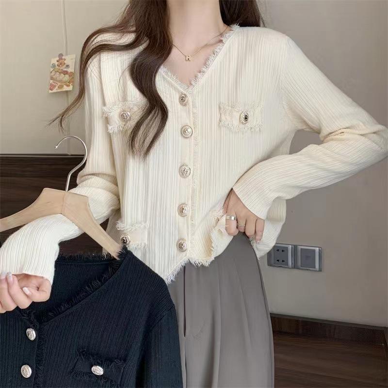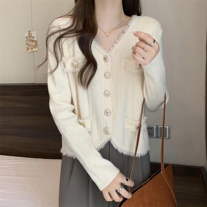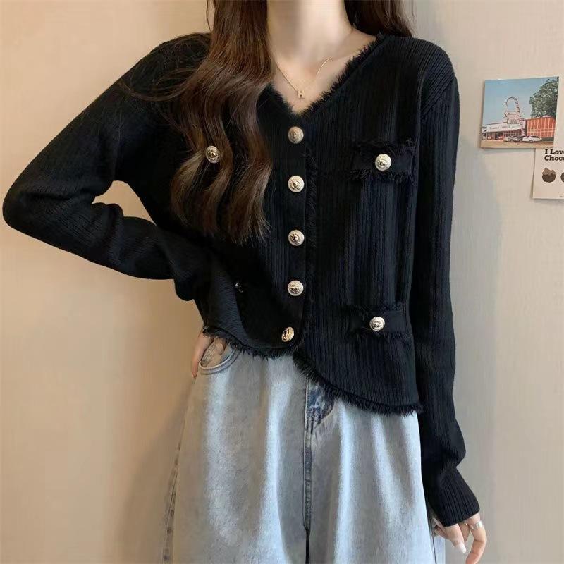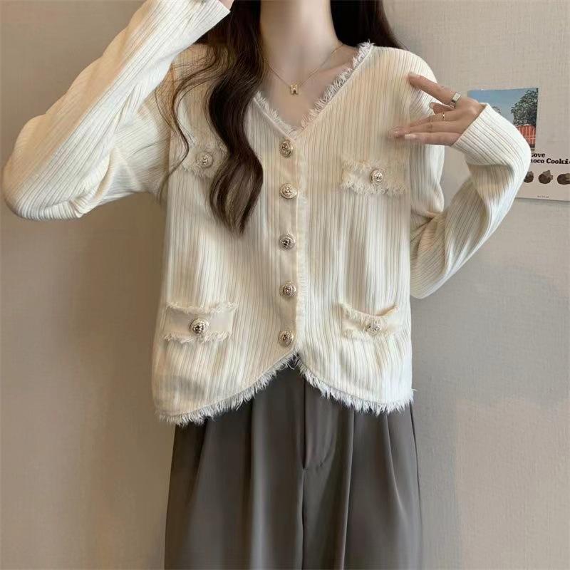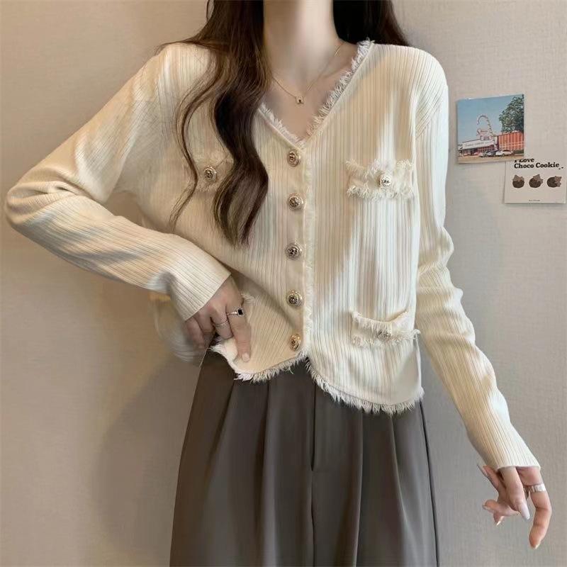 2025 Otoño Tops de Punto Irregulares Moda Femenina Crudo Suelto Delgado Cárdigan Top Trendy
