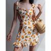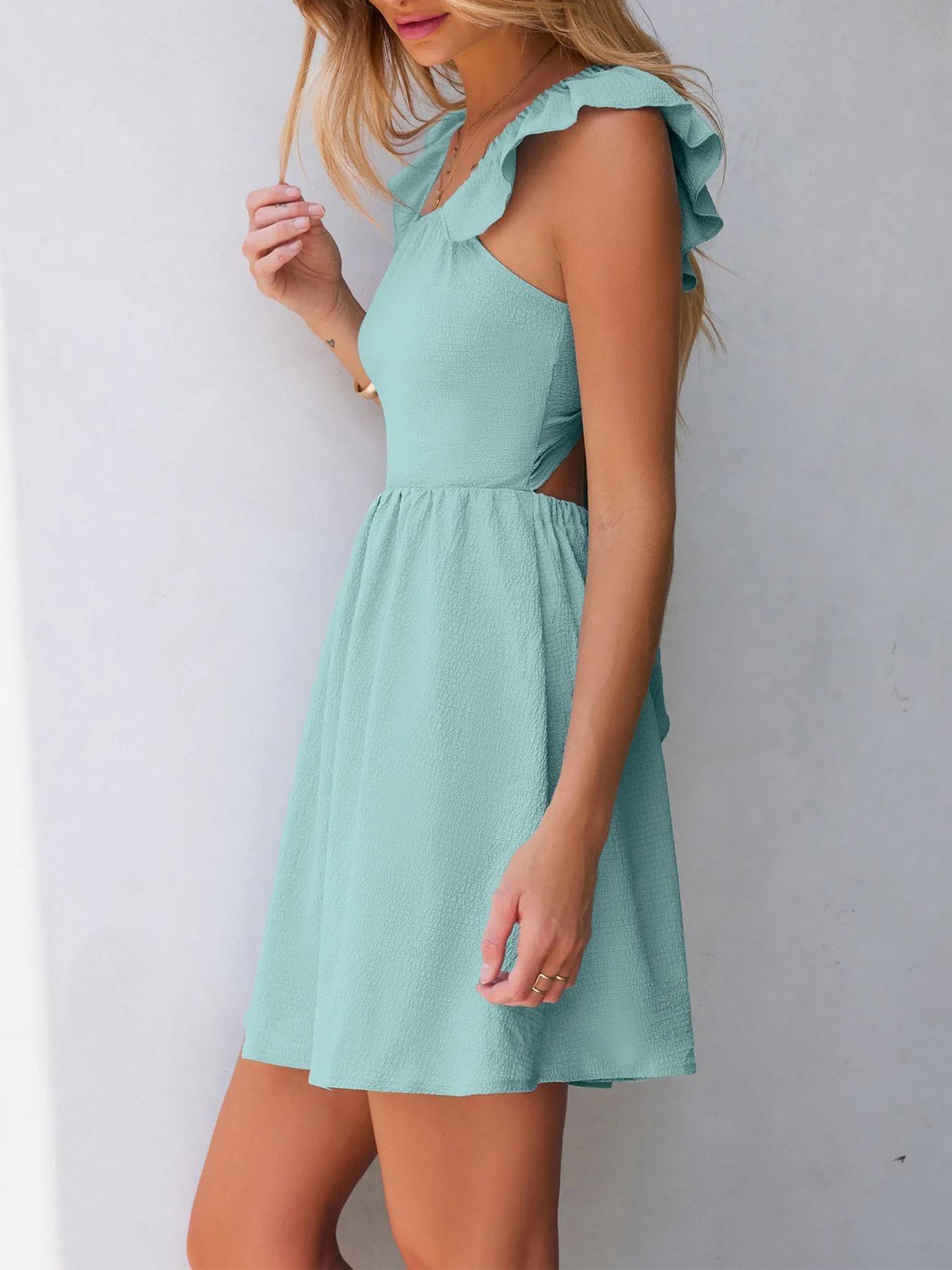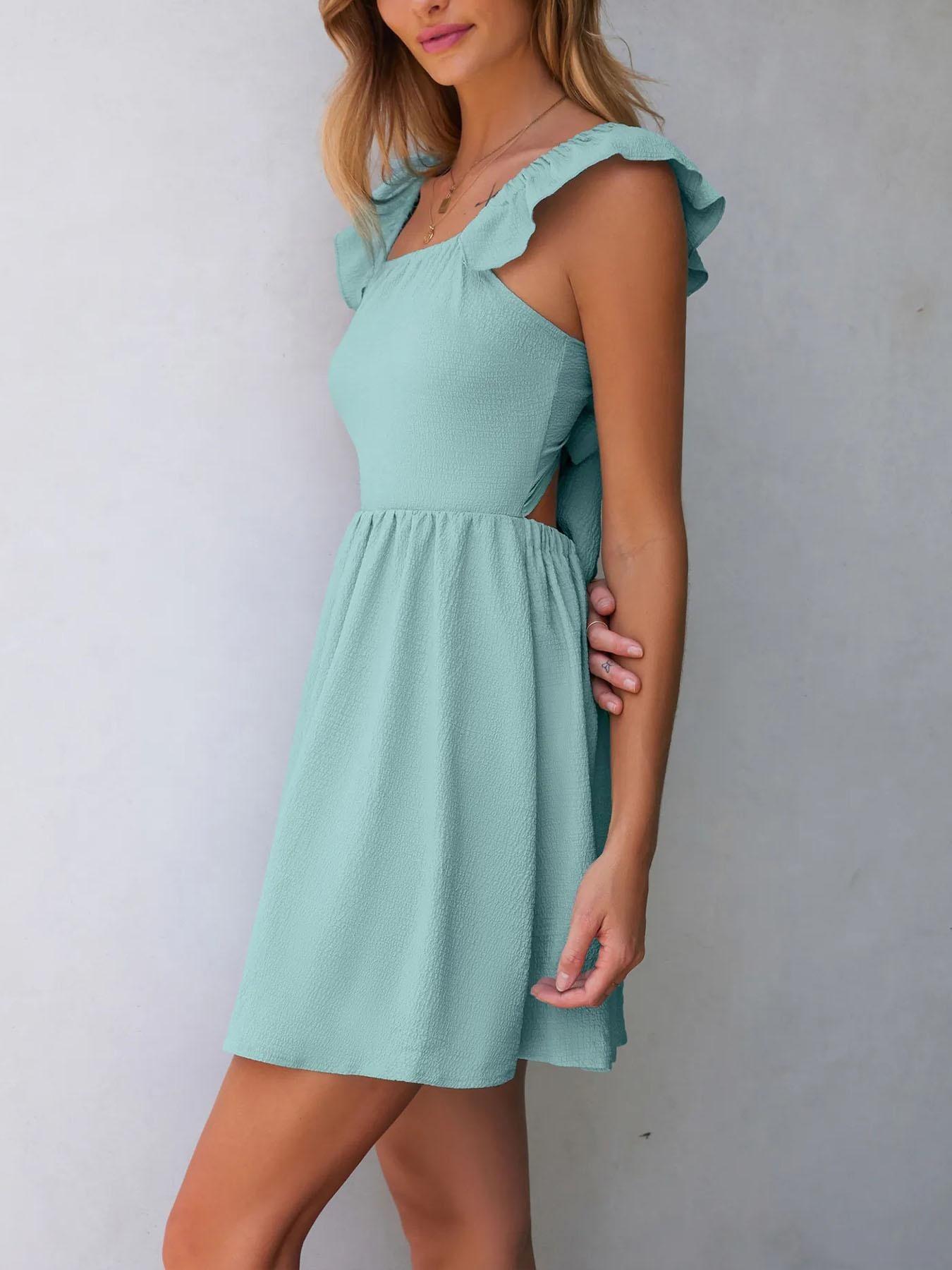Vestido de playa festivo sin espalda con lazo en la espalda, falda dulce de manga volante para mujer europea y americana transfronteriza