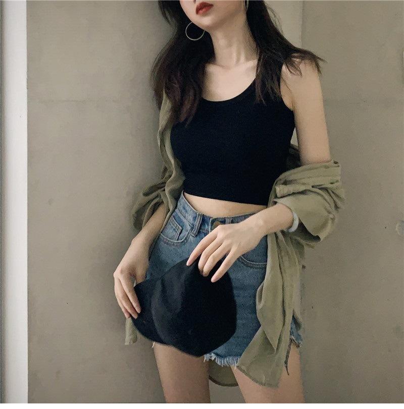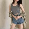 Camisola de Algodón para Mujer Verano 2025 Estilo Corto con Estilo Bm Ropa Exterior de Verano Ombligo Expuesto Popular Sexy Sin Mangas Estudiante