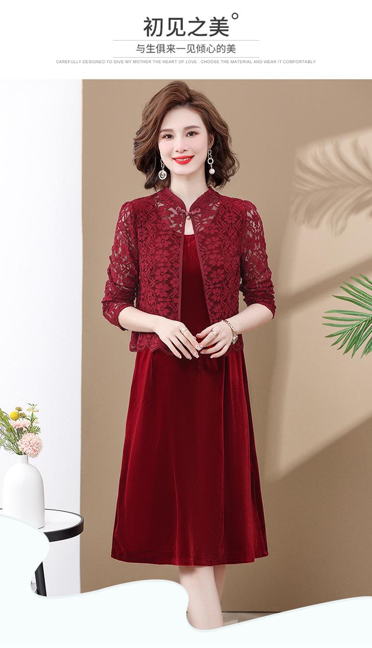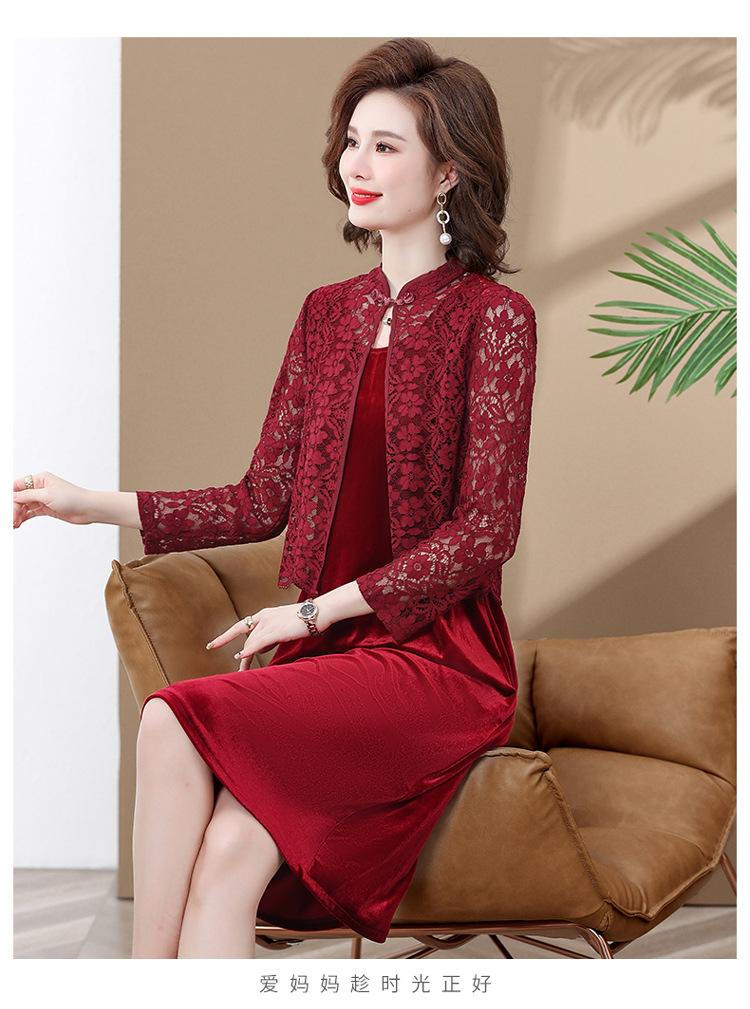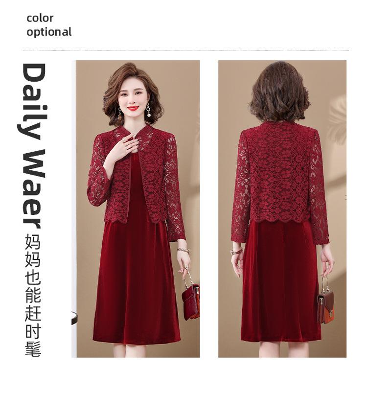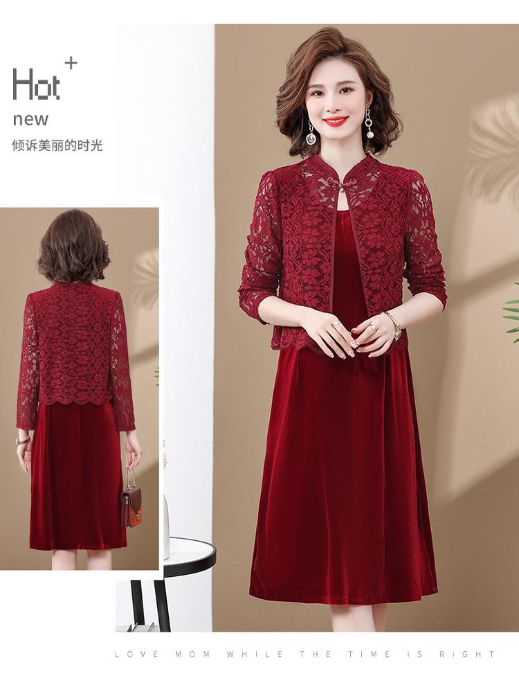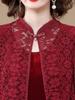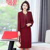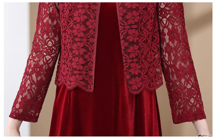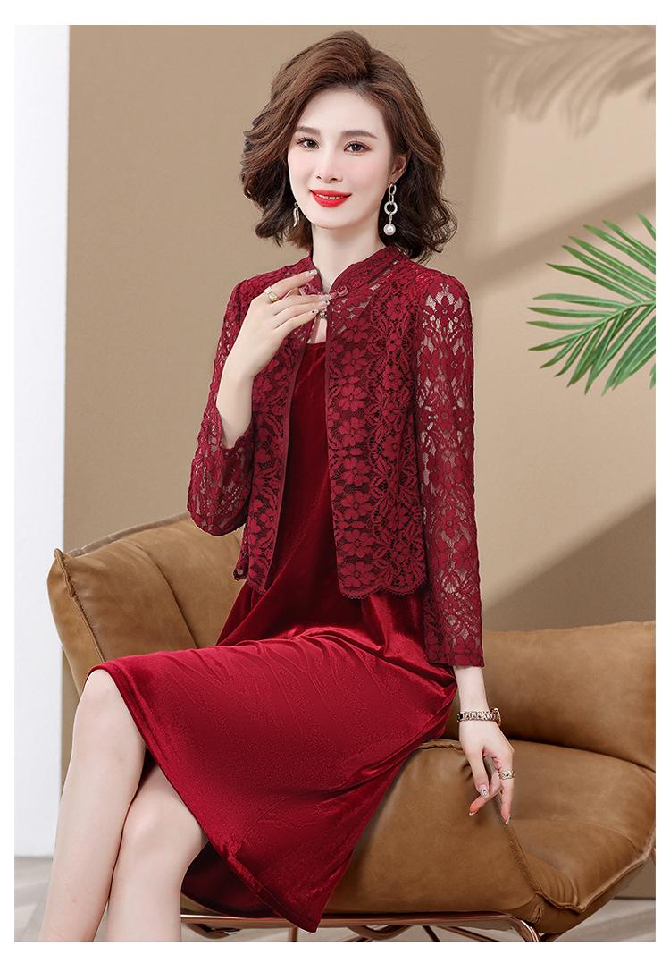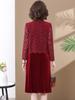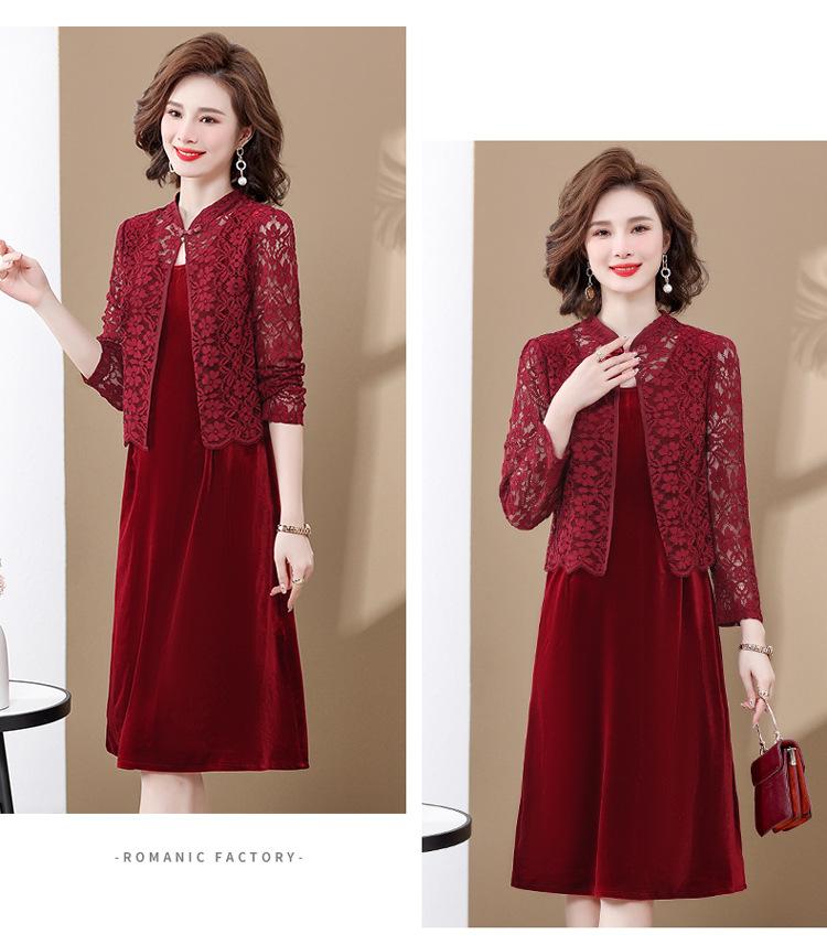 Vestido de encaje rojo de manga larga para mujeres de mediana edad y mayores, vestido de novia de dos piezas con falda de mediana edad para madres mayores.