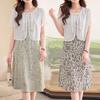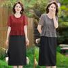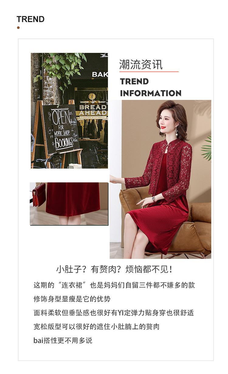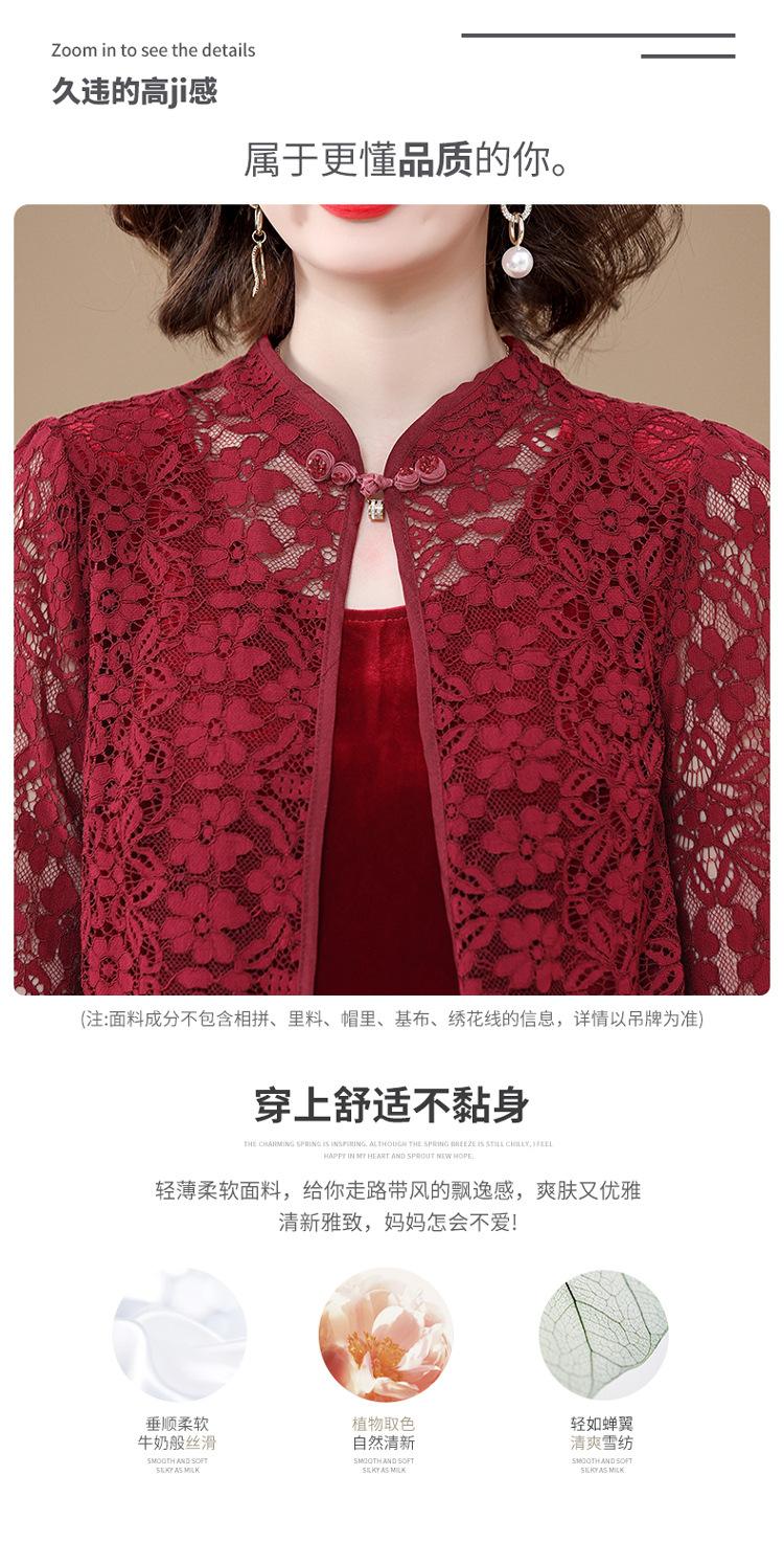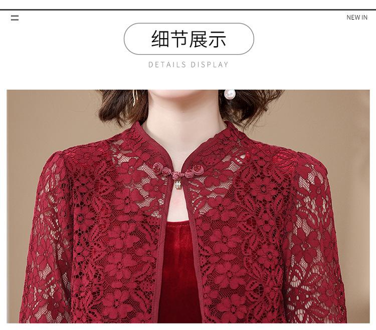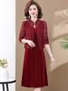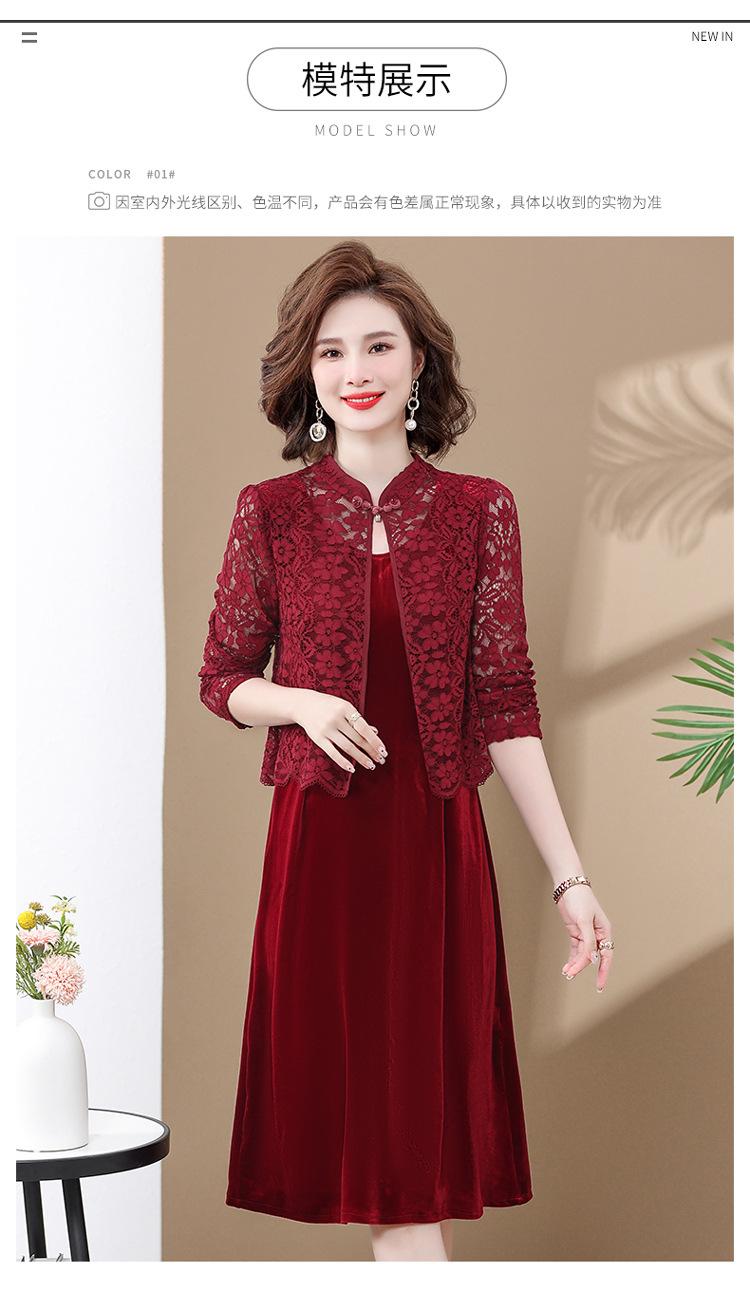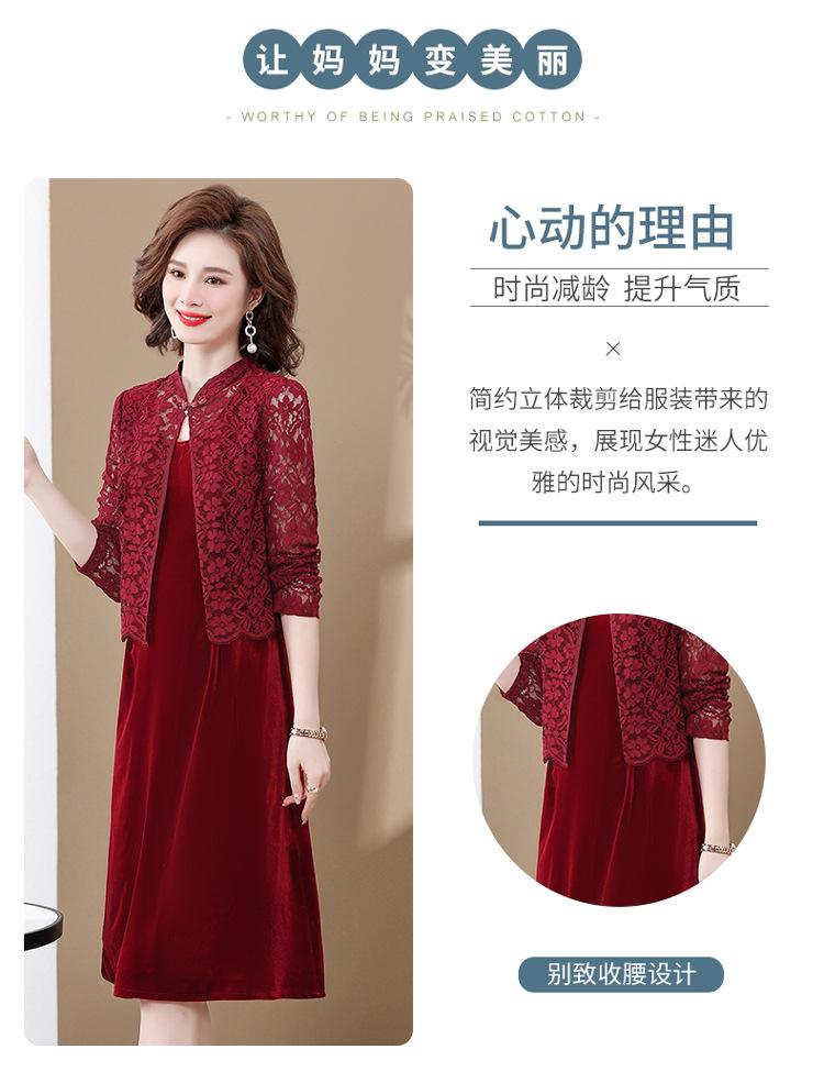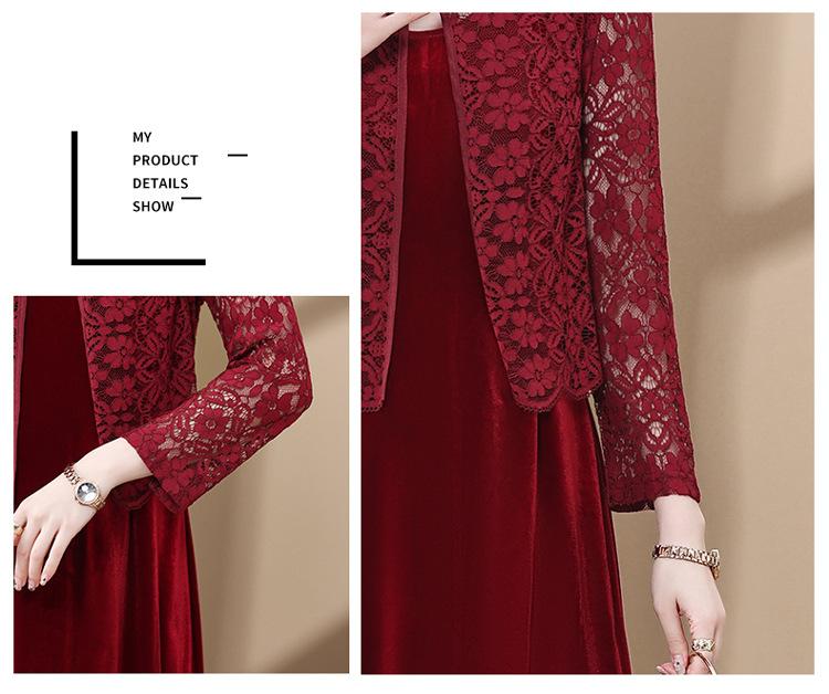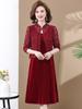 Vestido de encaje rojo de manga larga para mujeres de mediana edad y mayores, vestido de novia de dos piezas con falda de mediana edad para madres mayores.