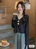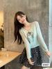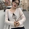 Moda Versátil Dulce Camisola Blusa Camiseta Top de Punto Trendy Otoño Nuevo Diseño Nicho Top
