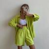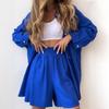 Camisa de manga larga de un solo pecho de color sólido nuevo de primavera 2024, traje de pantalones cortos casuales de moda holgados en stock