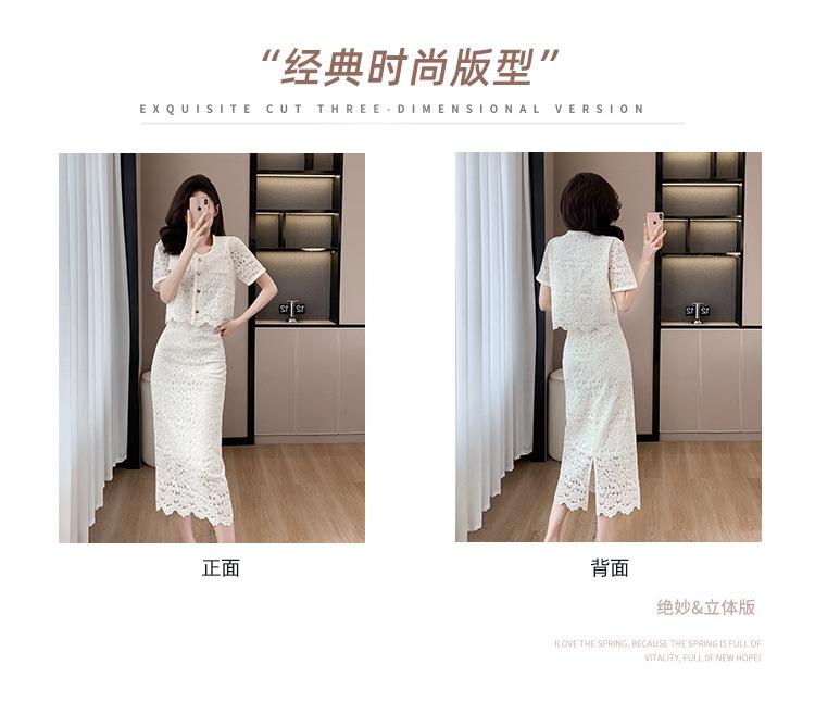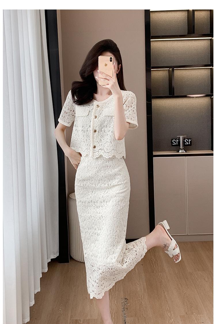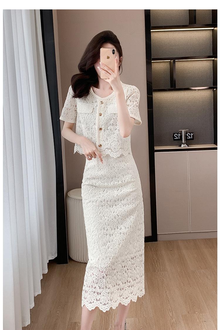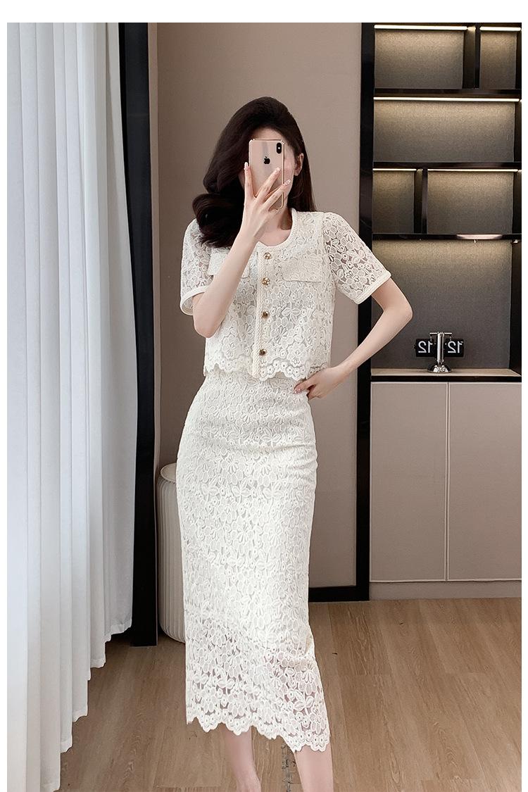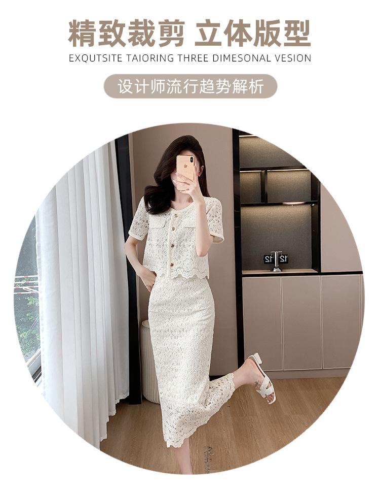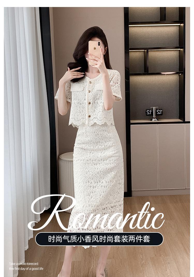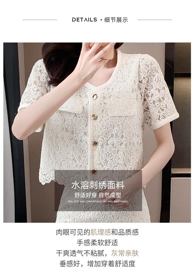 Verano Nuevo Celebridad de Internet Encaje Soluble en Agua Estilo Pequeño Fragante Traje Elegante Conjunto de Dos Piezas