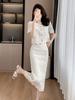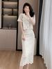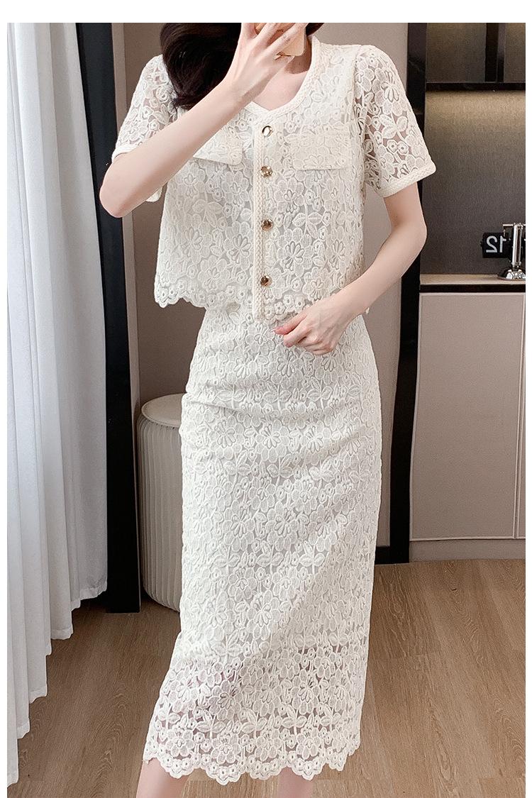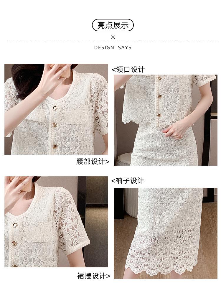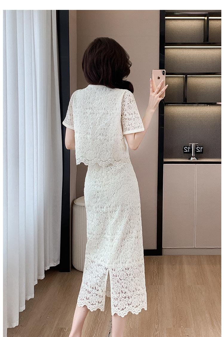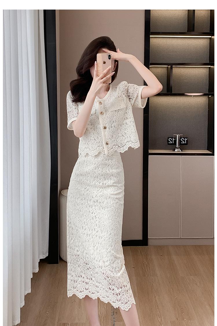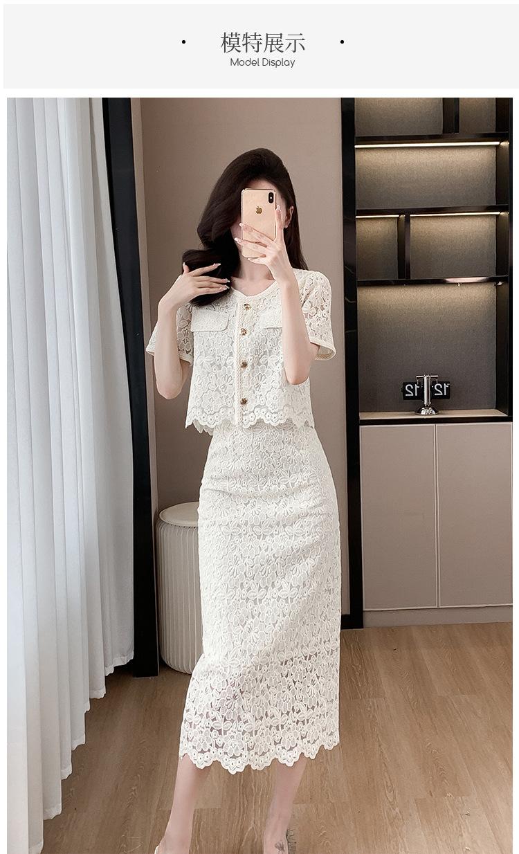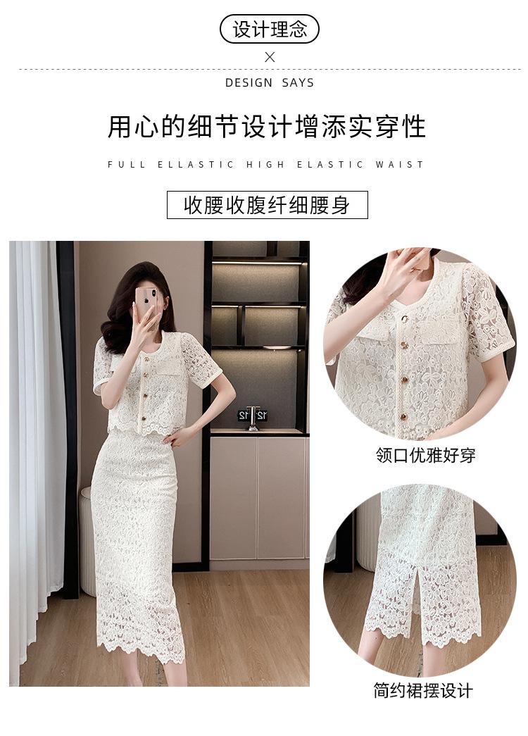 Verano Nuevo Celebridad de Internet Encaje Soluble en Agua Estilo Pequeño Fragante Traje Elegante Conjunto de Dos Piezas