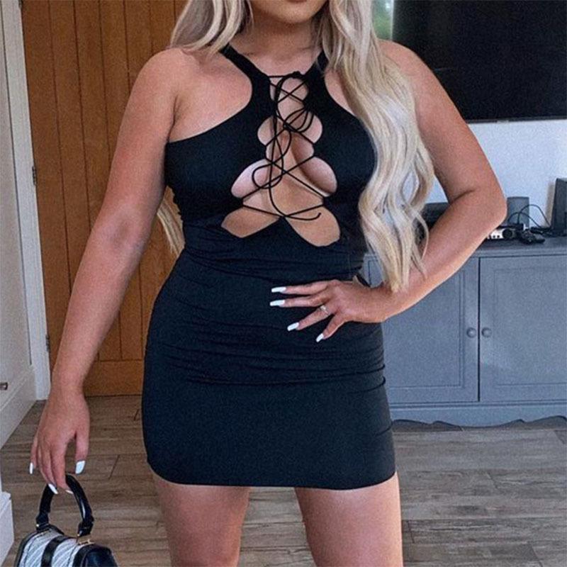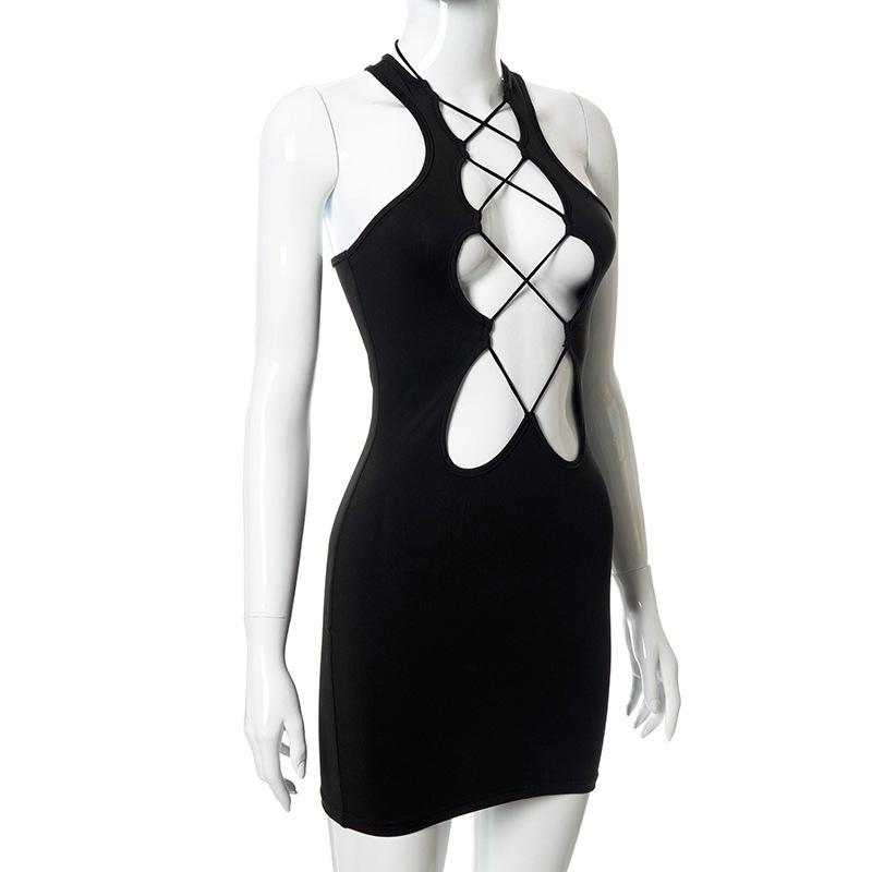Vestido informal sin mangas con bandolera de color sólido, sexy, sin espalda, para mujer, de verano, transfronterizo, Europa y Estados Unidos, 2024