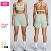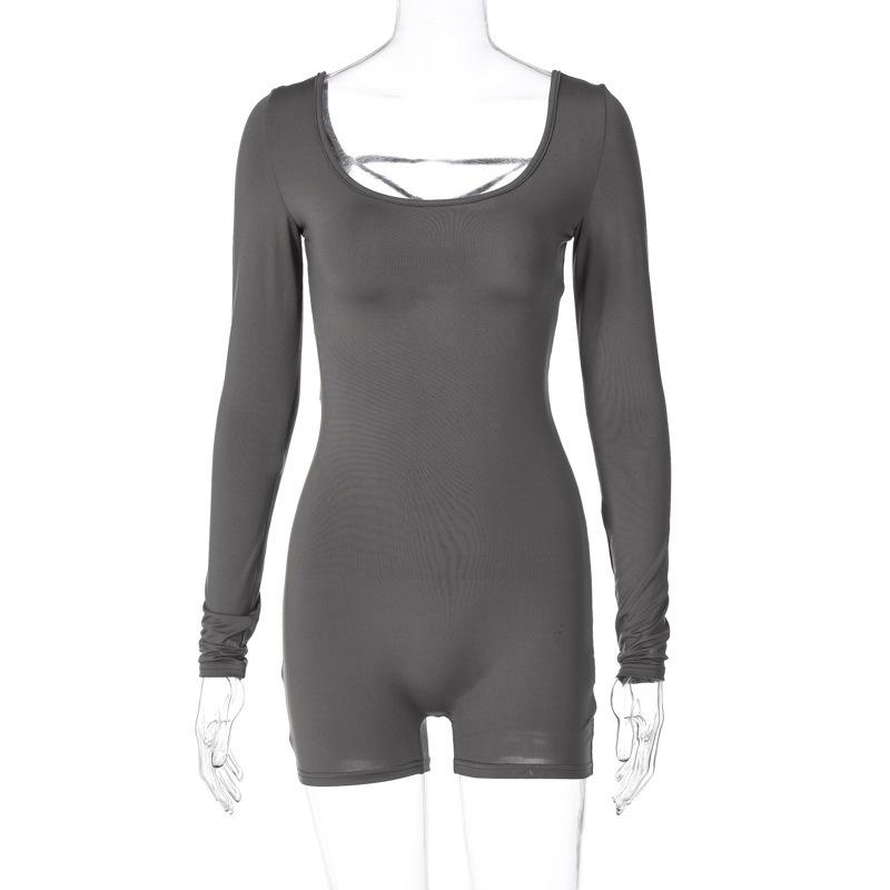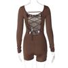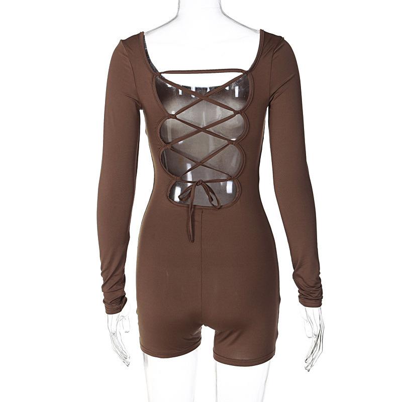 Pantalones cortos de yoga ajustados con cordones, espalda descubierta, cuello en U, manga larga y sexys para mujer transfronteriza europea y americana