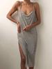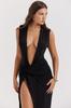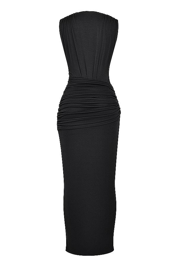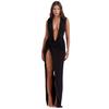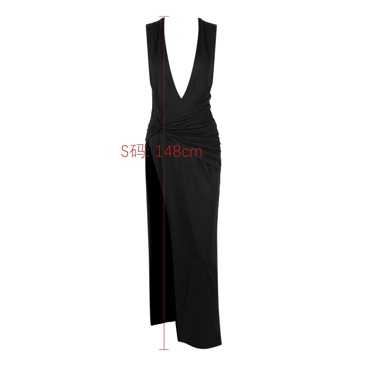 Europa y Estados Unidos, un nuevo y atractivo vestido negro plisado con abertura en V profunda para mujeres, con nuevas tendencias de comercio exterior.