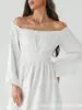 Vestido elegante y noble de primavera 2025 con diseño elegante, hombros descubiertos, mangas abullonadas y cintura alta en forma de A.