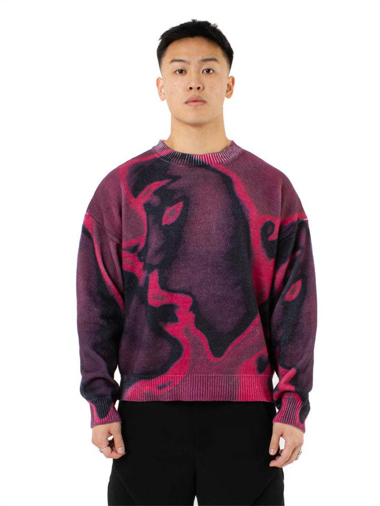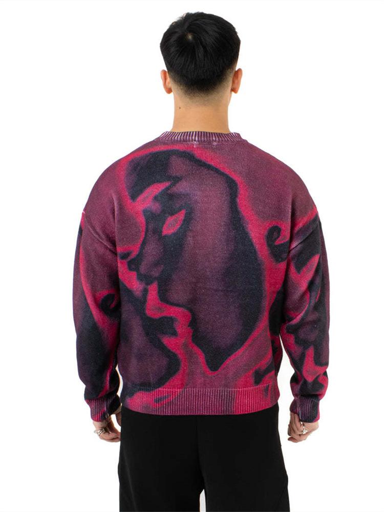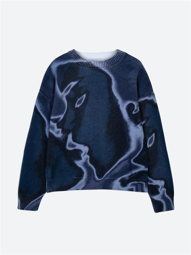 Suéter de cuello redondo estampado con personalidad de moda para mujer transfronteriza europea y americana de otoño e invierno de 2024