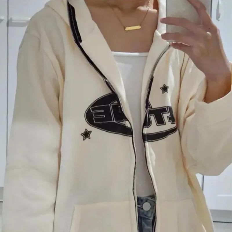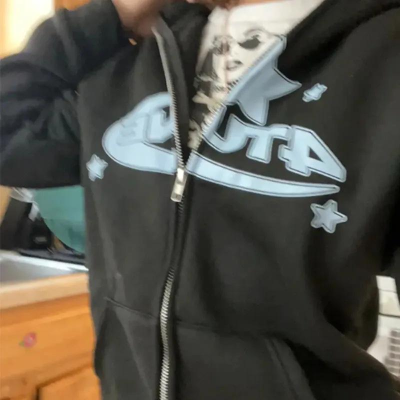 Compra Ropa de Otoño para Mujer Transfronteriza Europea y Americana 2024 Tendencia de Personalidad Harajuku Cremallera Gótica Alfabeto Sudadera con Capucha Suéter al por mayor en Joom.pro