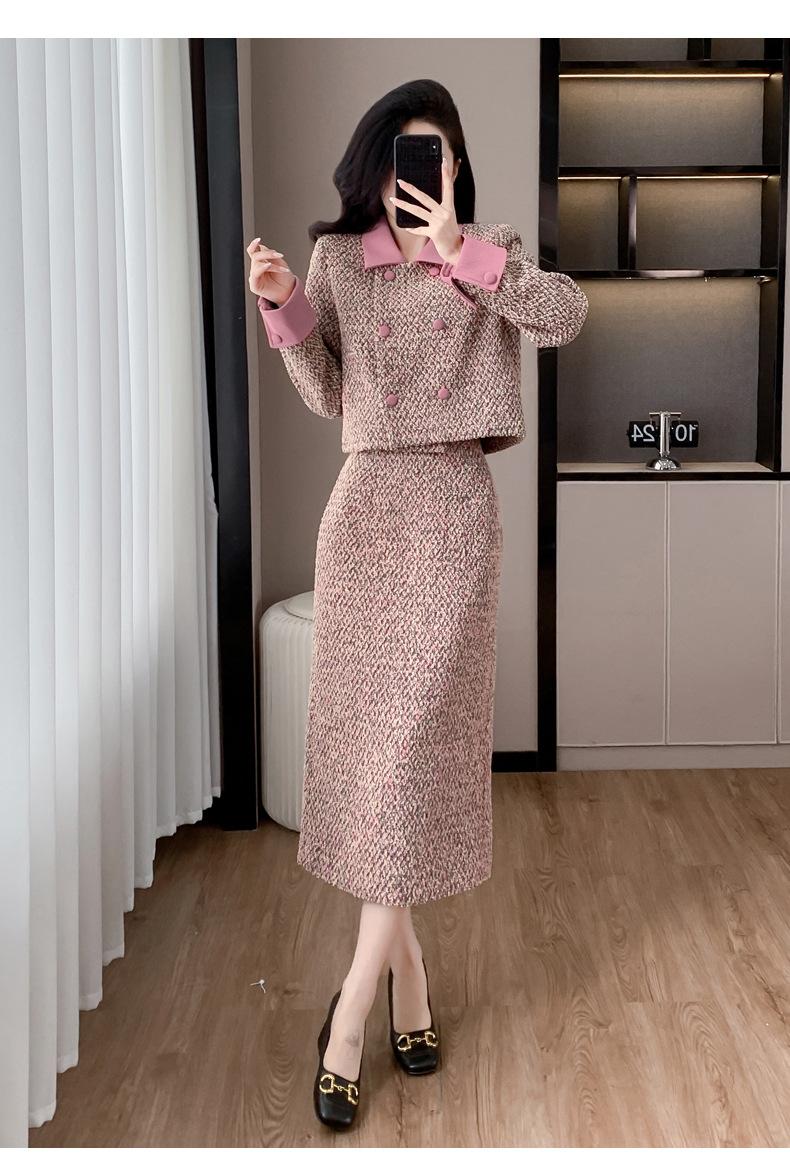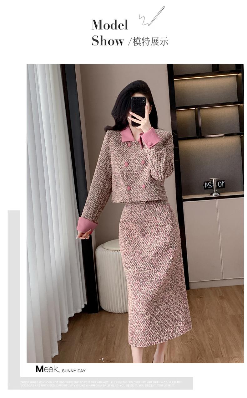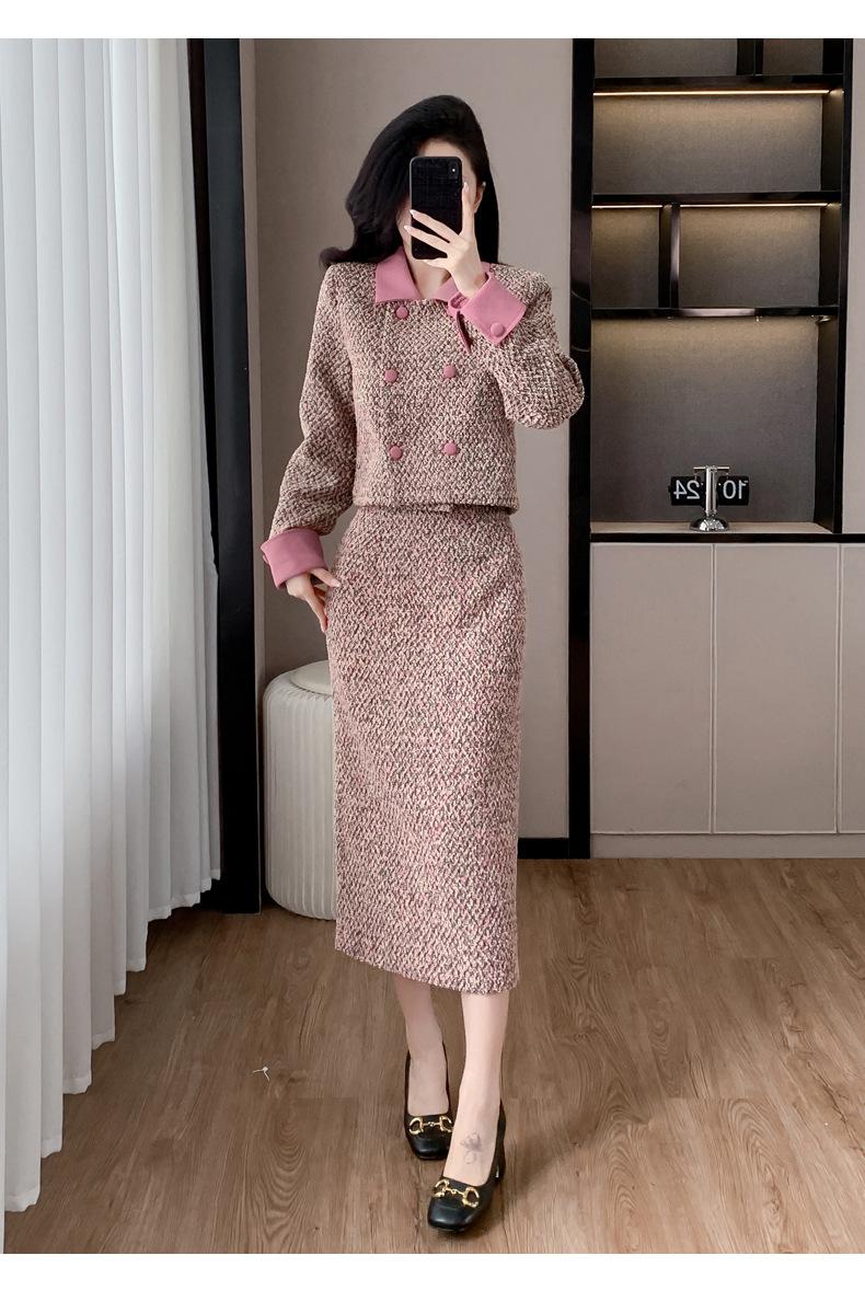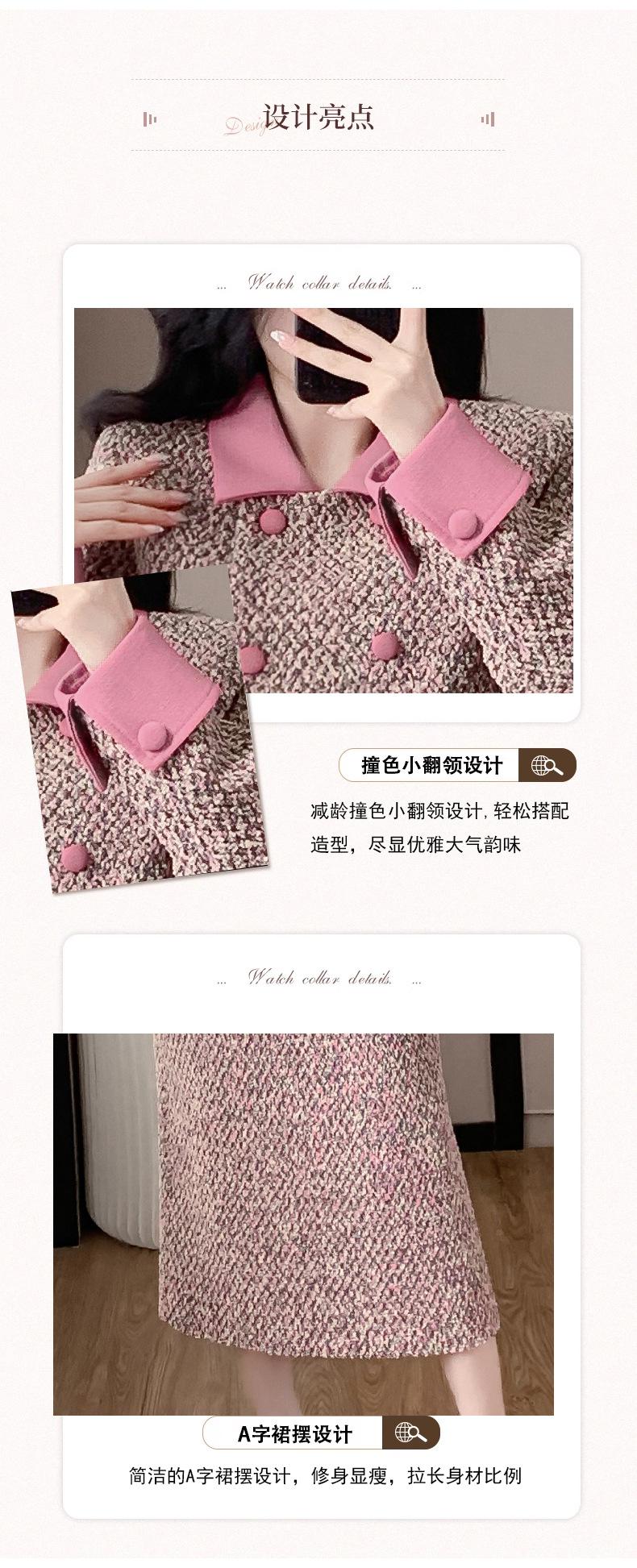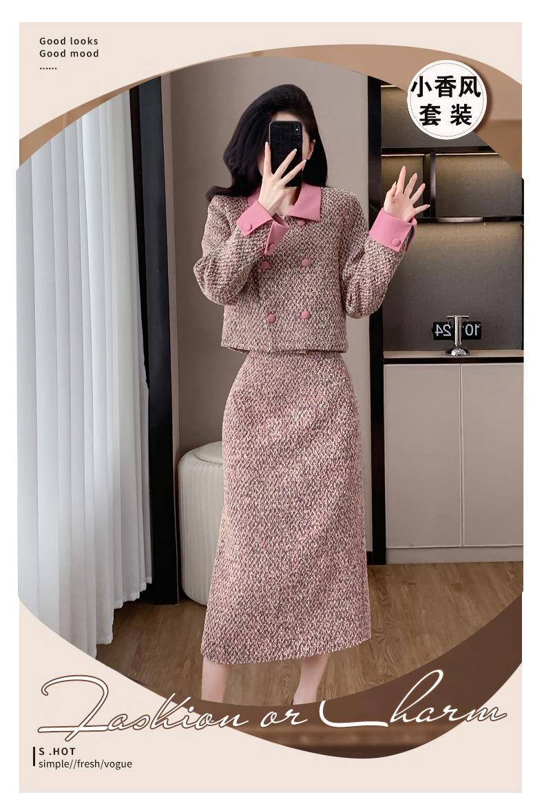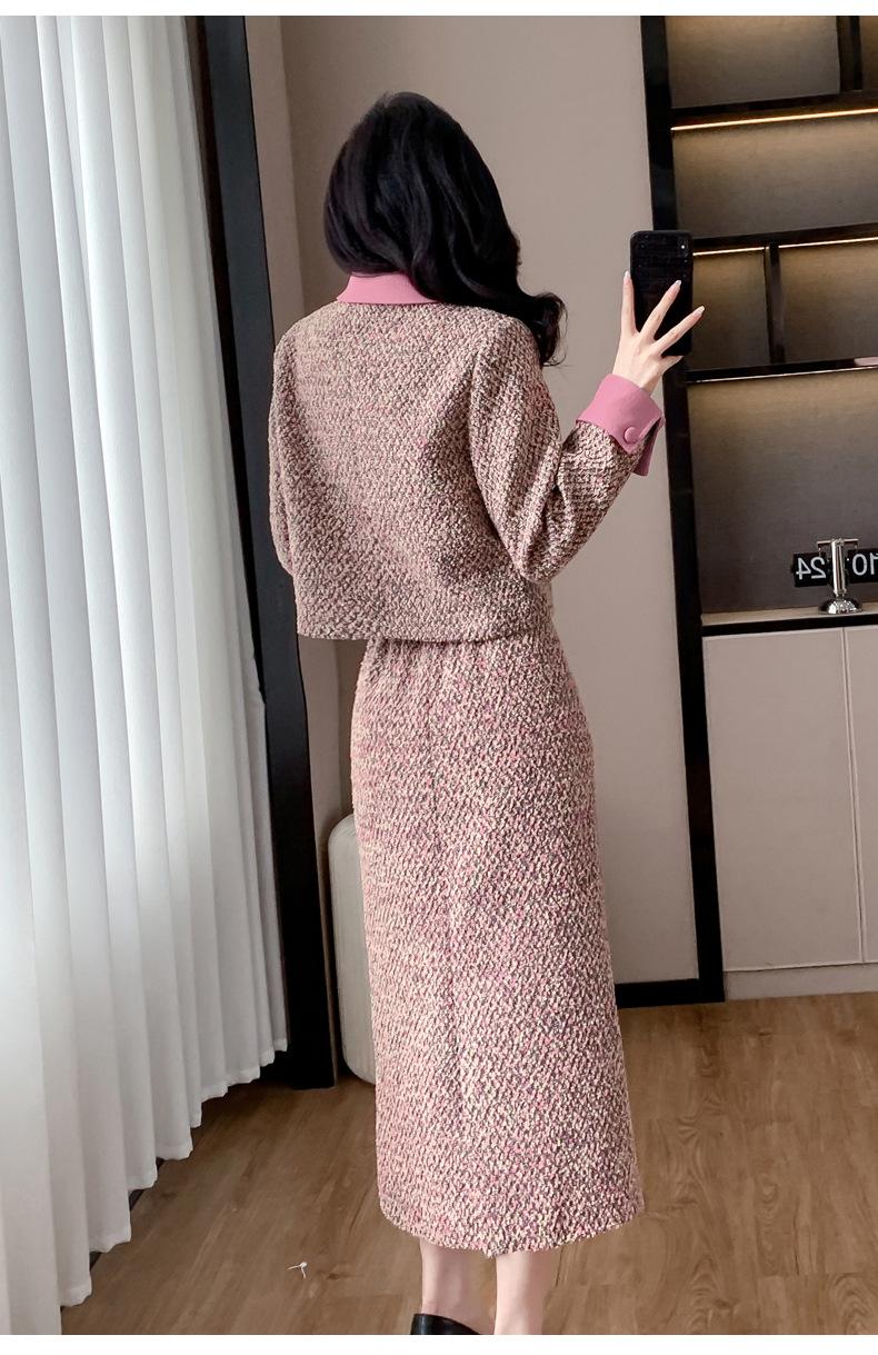 Disparo real en stock ~ conjunto de dos piezas de abrigo y falda de estilo fragante pequeño de color de contraste de socialité 2025 otoño e invierno nuevo traje de moda