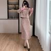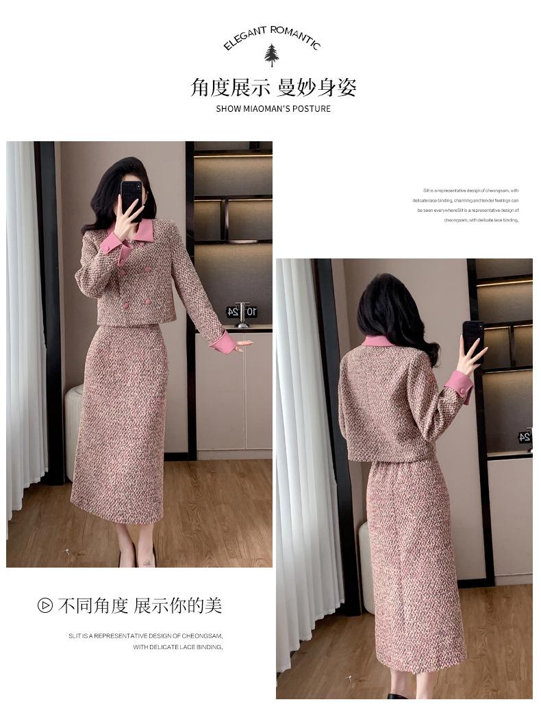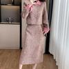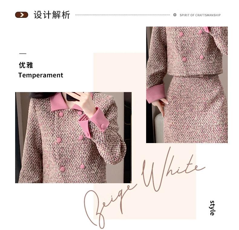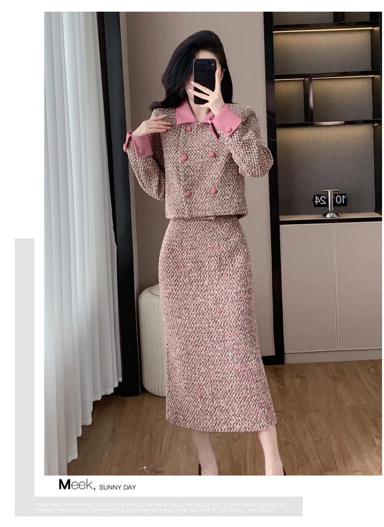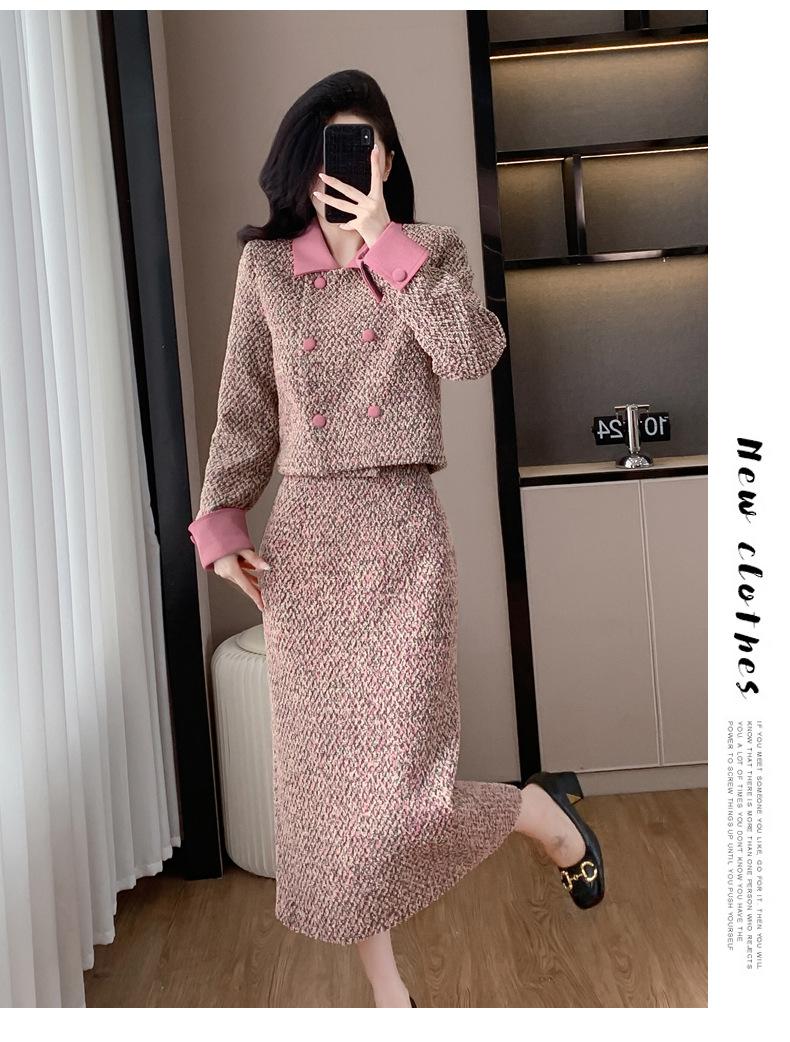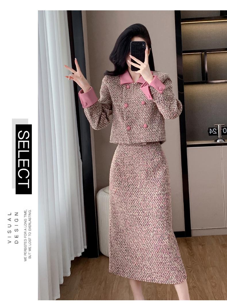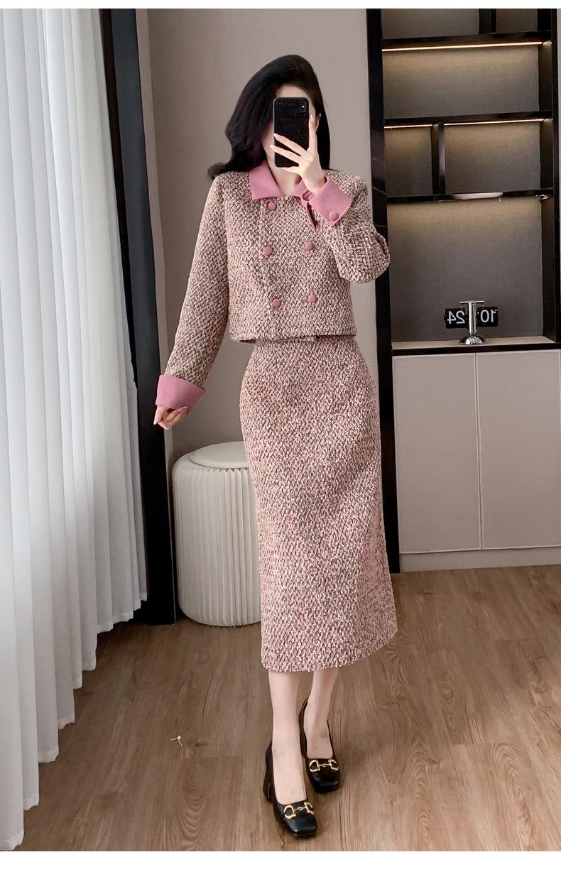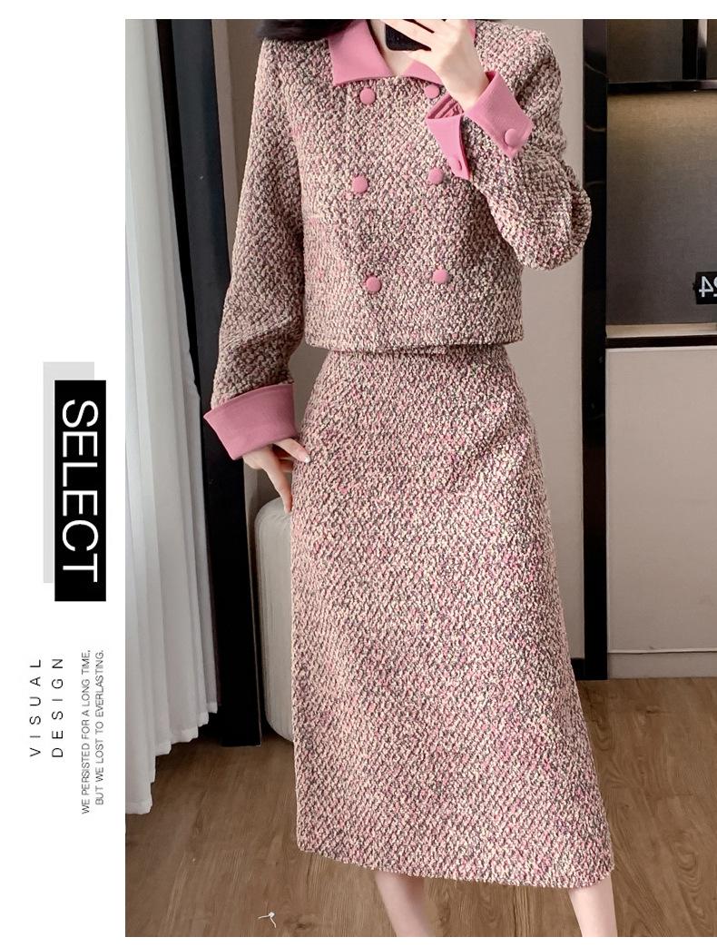Disparo real en stock ~ conjunto de dos piezas de abrigo y falda de estilo fragante pequeño de color de contraste de socialité 2025 otoño e invierno nuevo traje de moda