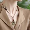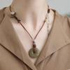 Collar con colgante de jade hetiano con hebilla de plata, cadena de lana ligera de lujo de alta gama, joyería de estilo étnico a la moda que combina con todo.
