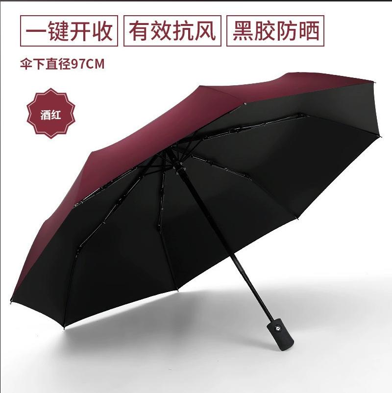 Paraguas automático grande plegable de goma negra, resistente al sol y a la lluvia, de doble uso, con protección solar y UV.