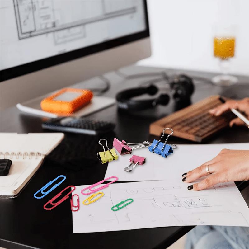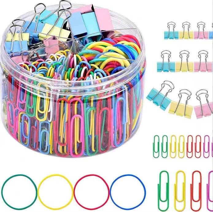 Clip de papel de color directo de fábrica papelería de oficina clip de papel mixto de varios tamaños metal niquelado plateado viento hehe