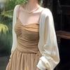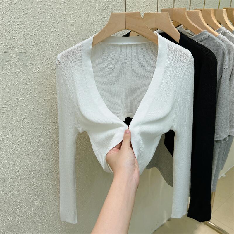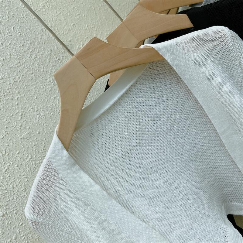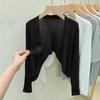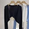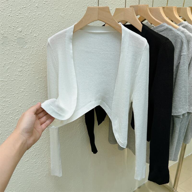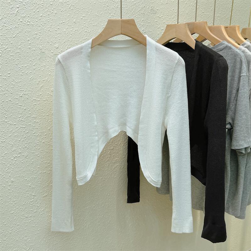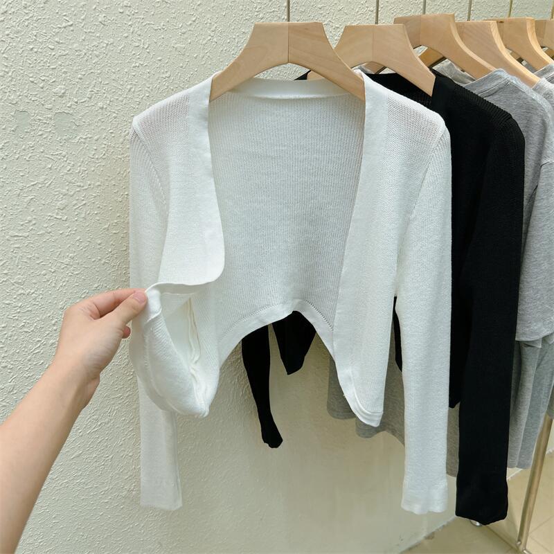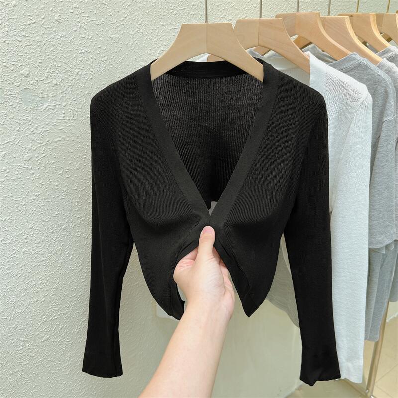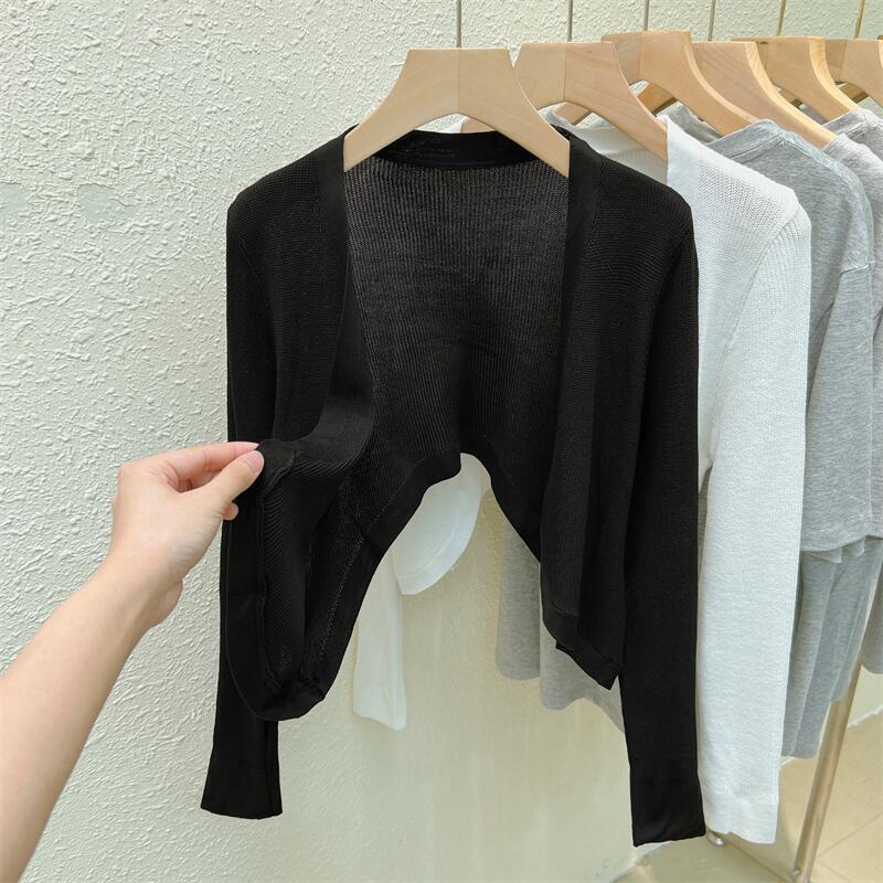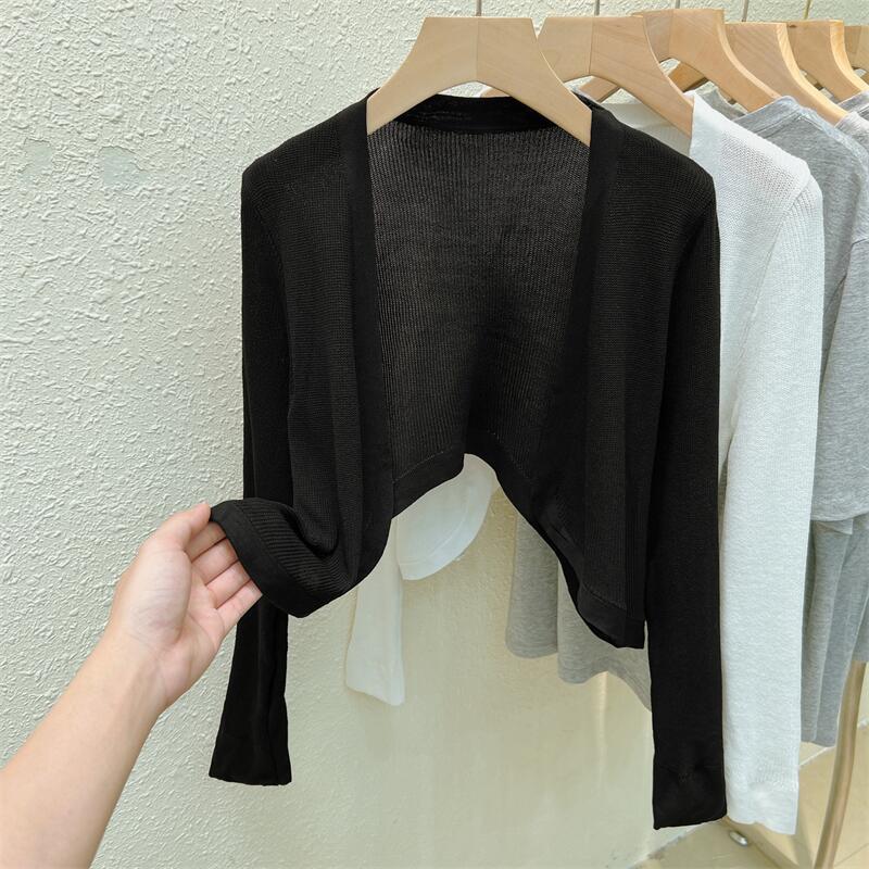 Cárdigan de Punto de Seda de Hielo Fino para Mujer Verano Negro Chal Pequeño Top con Falda Slip Blusa Protector Solar Chaqueta