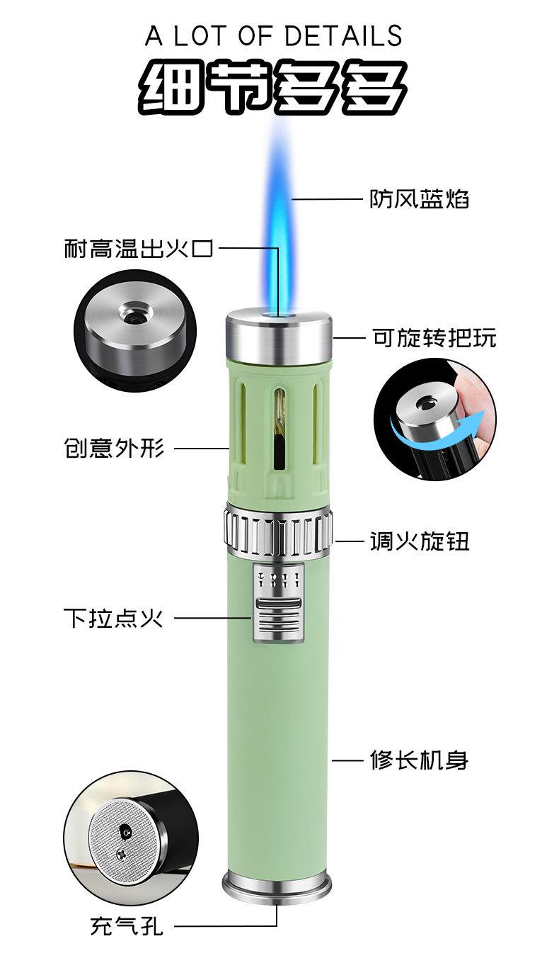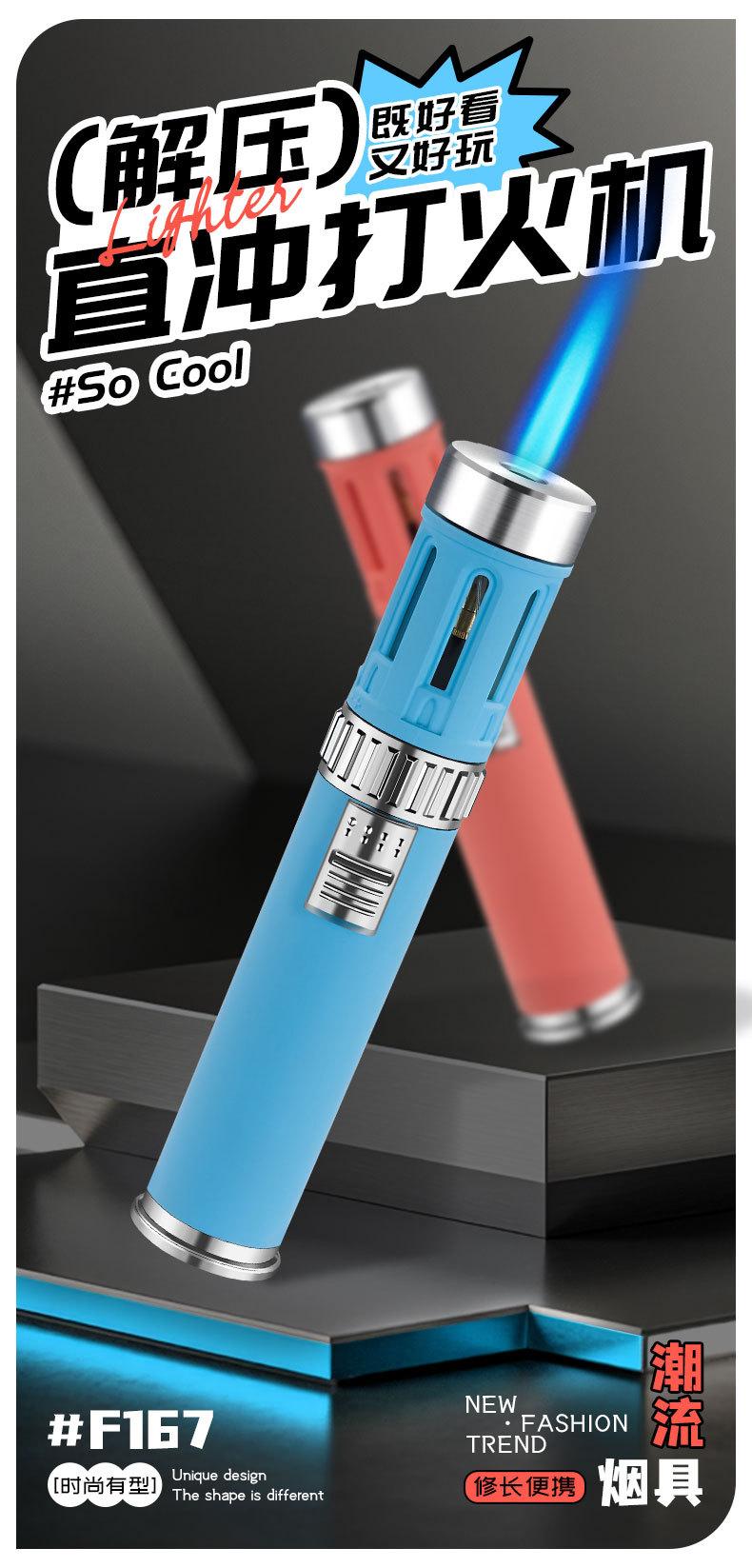 Nuevo encendedor de llama azul recta de cilindro frío, encendedor inflable, alto valor de color, portátil, venta al por mayor, transfronterizo
