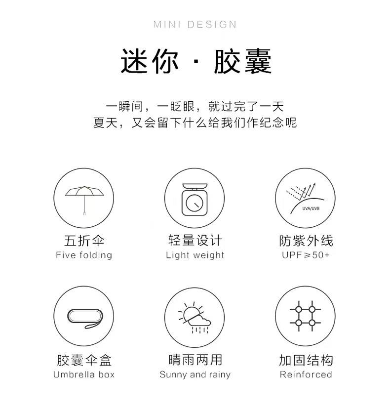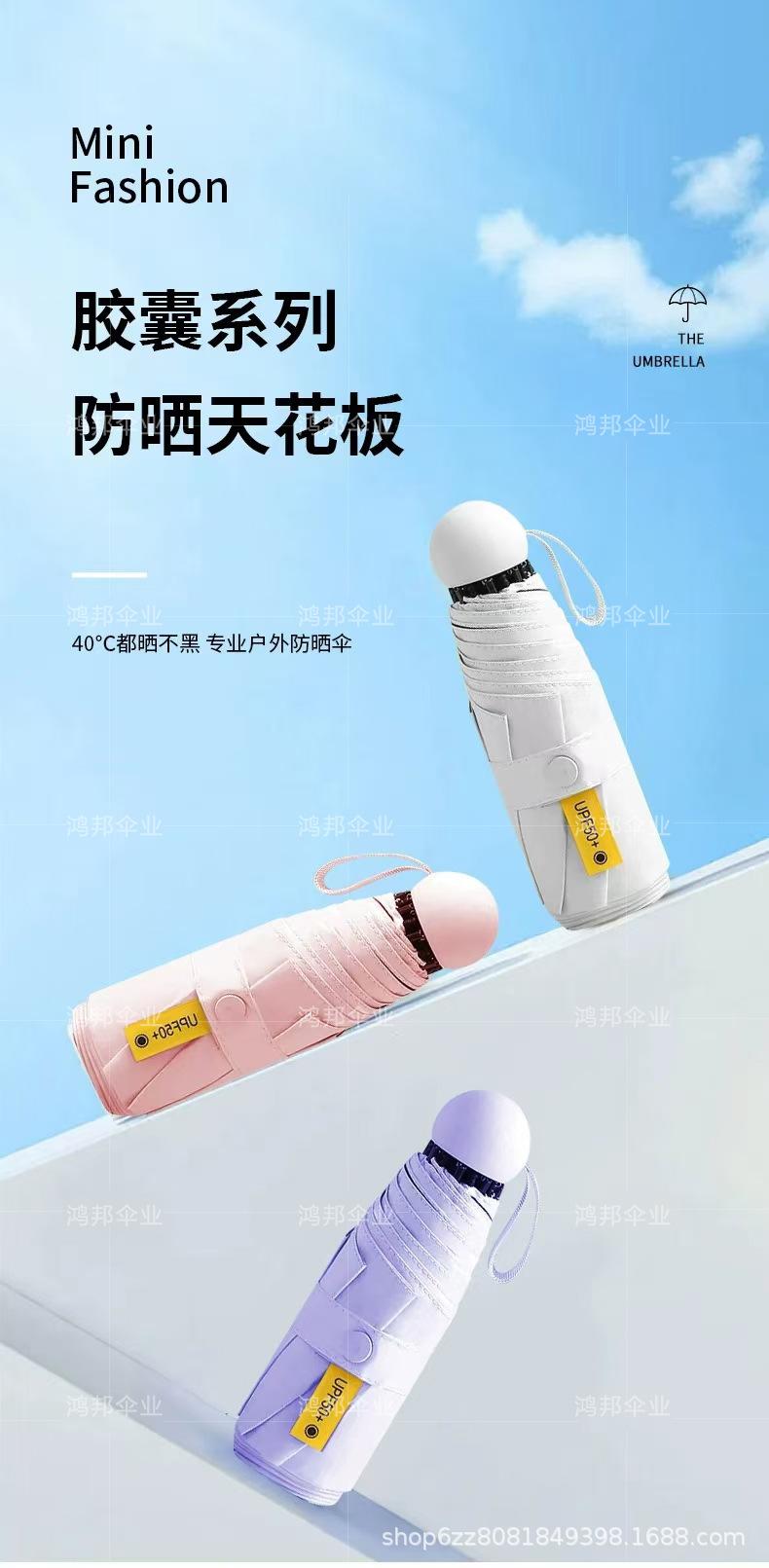 50% de descuento Sombrilla Cápsula para Mujer Sombrilla Compacta para Lluvia o Sol Sombrilla de Bolsillo de Vinilo Sombrilla Publicitaria con Logo Imprimible