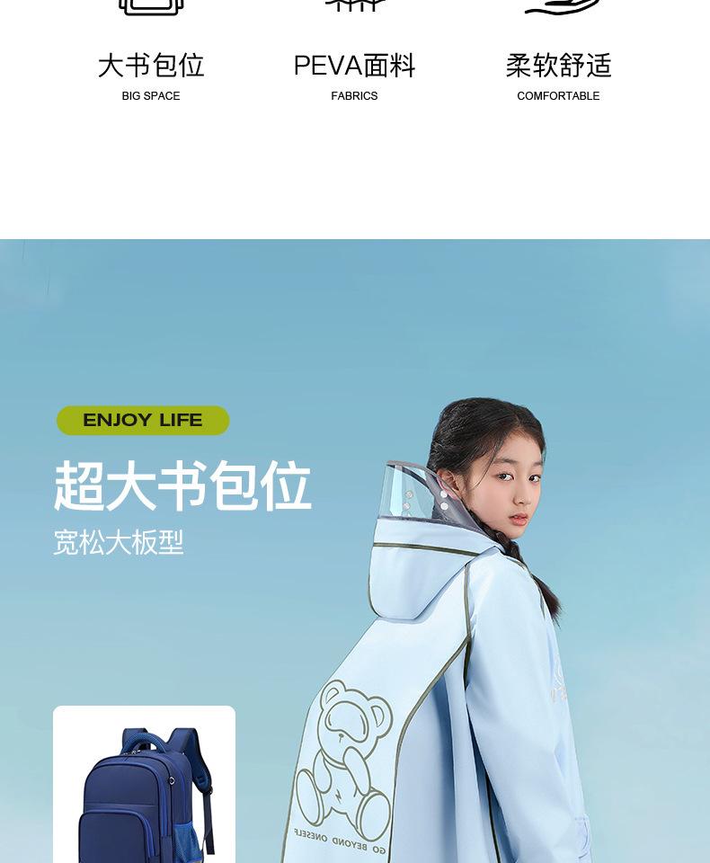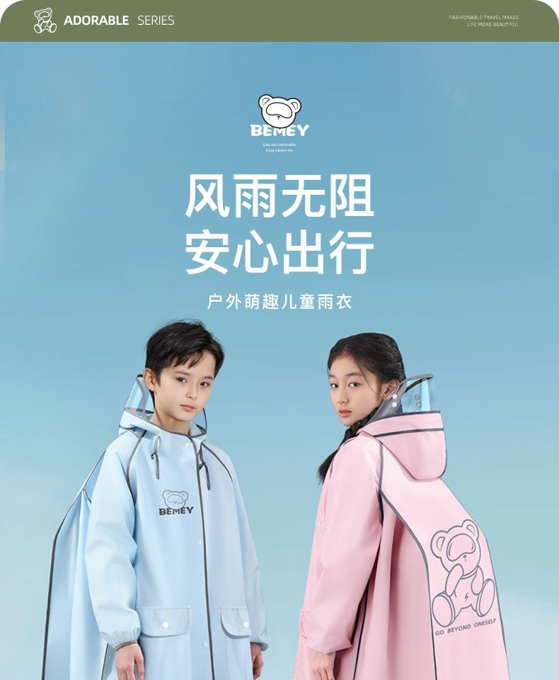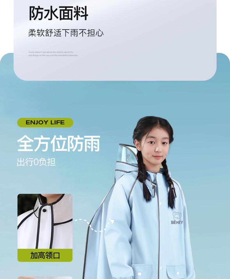 Chubasquero infantil Bei Mei, venta al por mayor, para niños y niñas, mochila escolar de cuerpo entero de EVA, poncho para estudiantes de primaria y jardín de infantes.