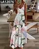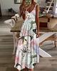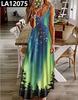 Vestido ajustado con cintura ajustada y elementos de paisaje de verano de Amazon Cross-border para mujer, serie de personalidad, vestido ajustado con tirantes.