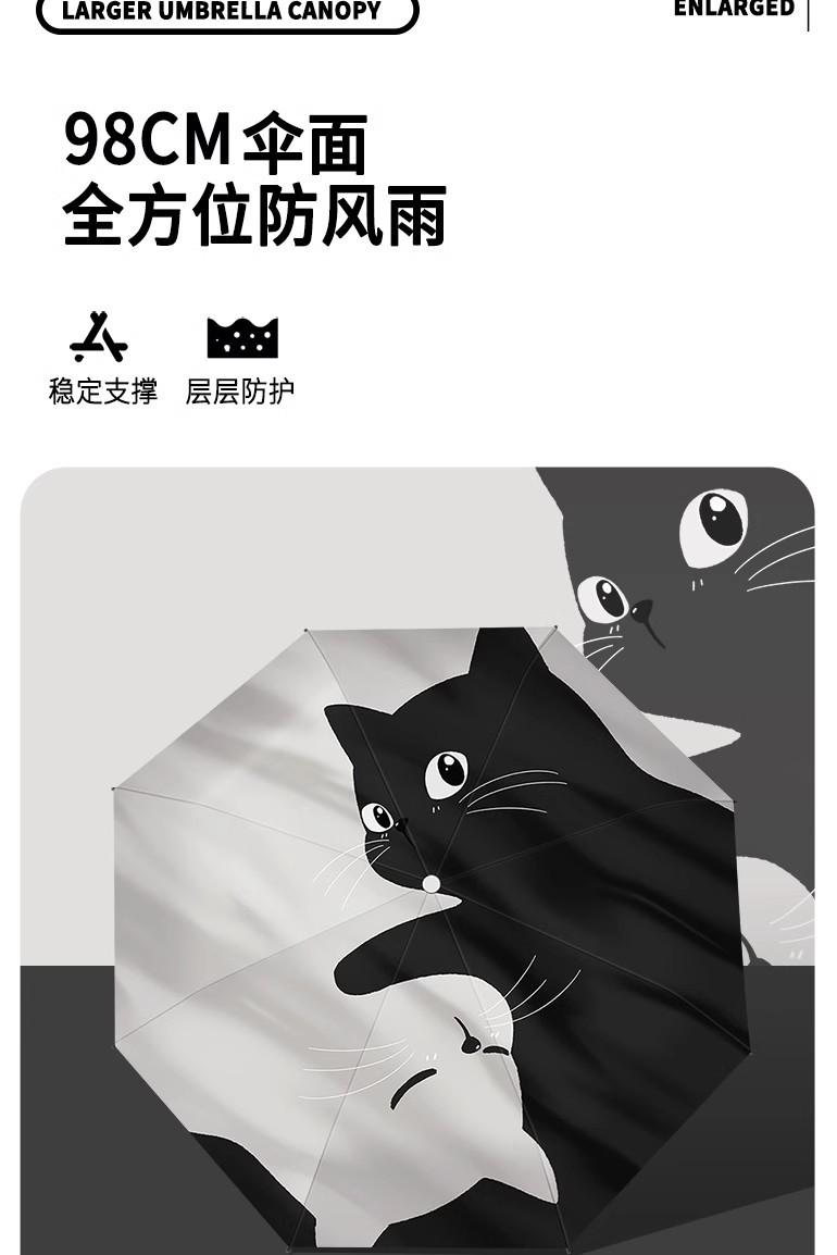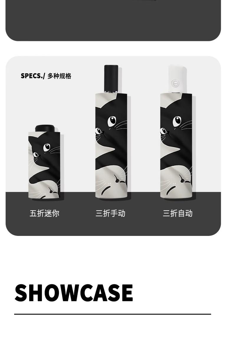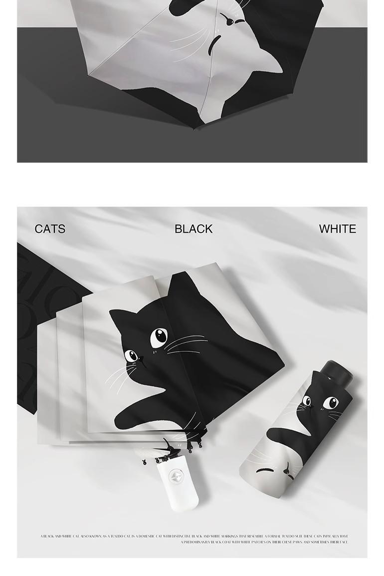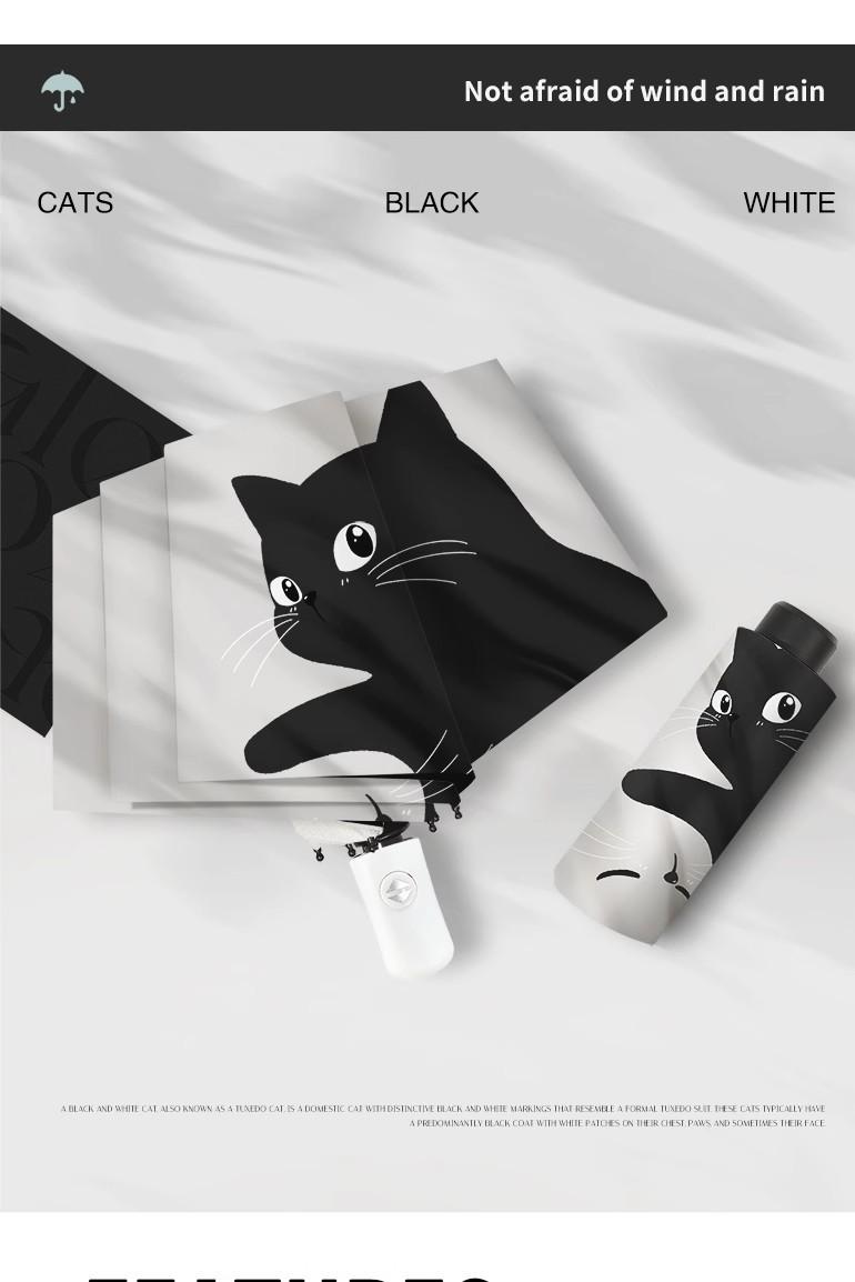 Paraguas de Gato de Doble Uso para Sol y Lluvia, Ligero, Portátil, Paraguas de Sol para Mujer, Automático, Protector Solar, Plegable, Engrosado, con Parasol de Goma Negra