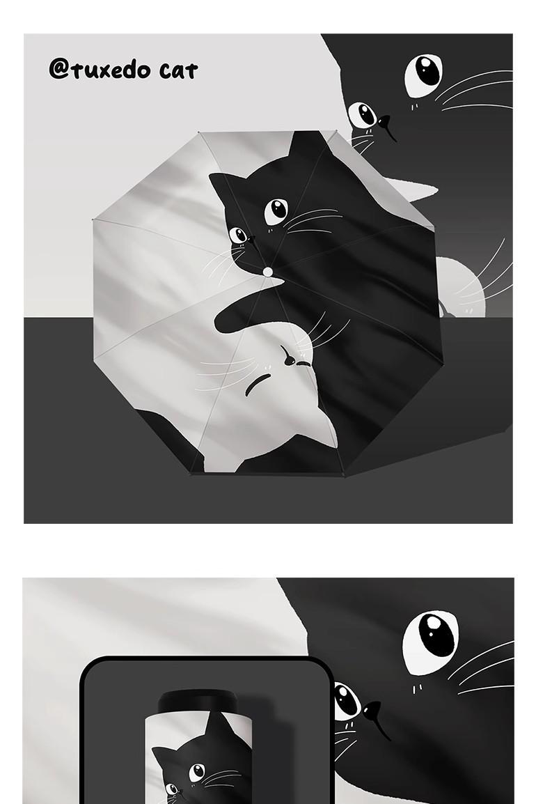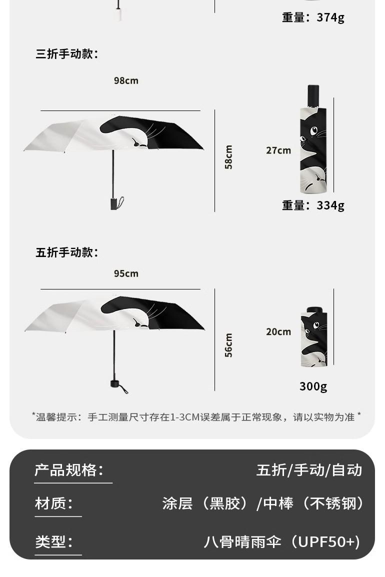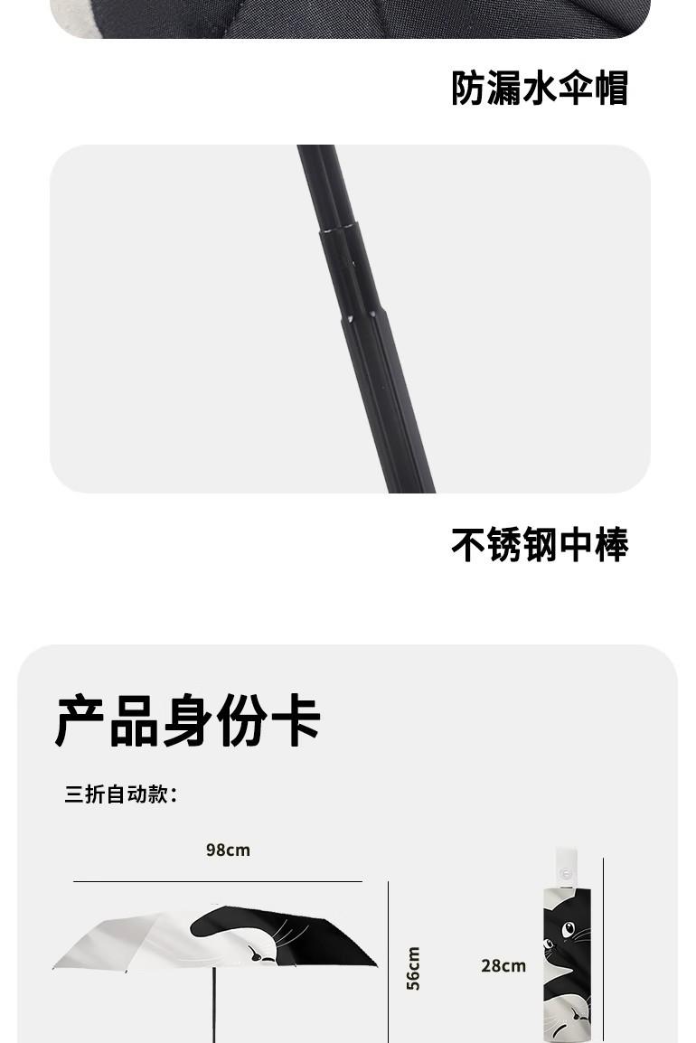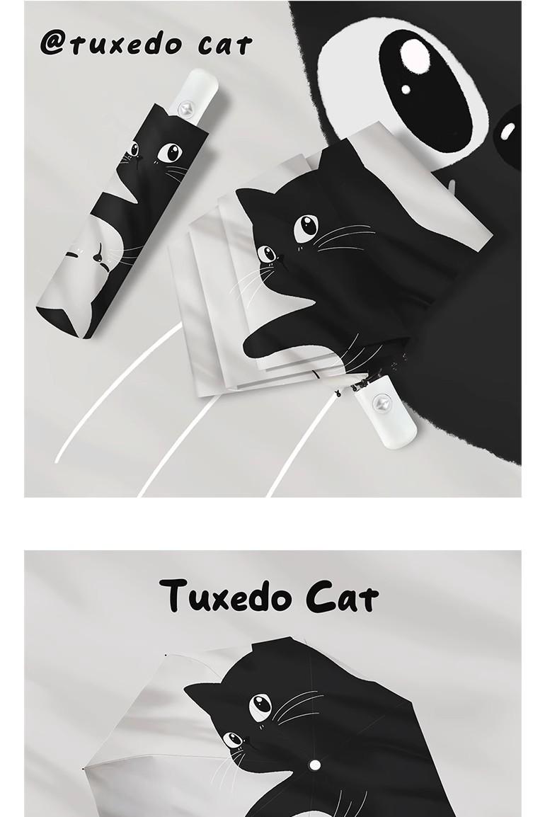 Paraguas de Gato de Doble Uso para Sol y Lluvia, Ligero, Portátil, Paraguas de Sol para Mujer, Automático, Protector Solar, Plegable, Engrosado, con Parasol de Goma Negra
