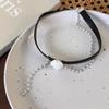 Gargantilla de perlas rosas, collar negro, cadena de clavícula, nicho, collar de alta calidad, collar de cuello, accesorios para mujer