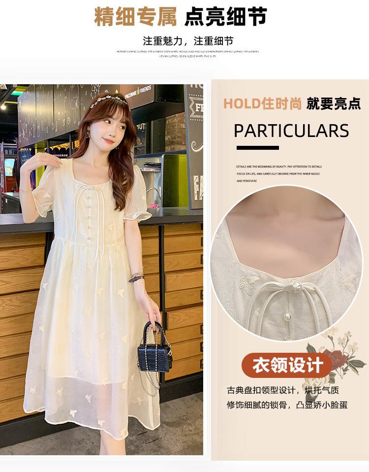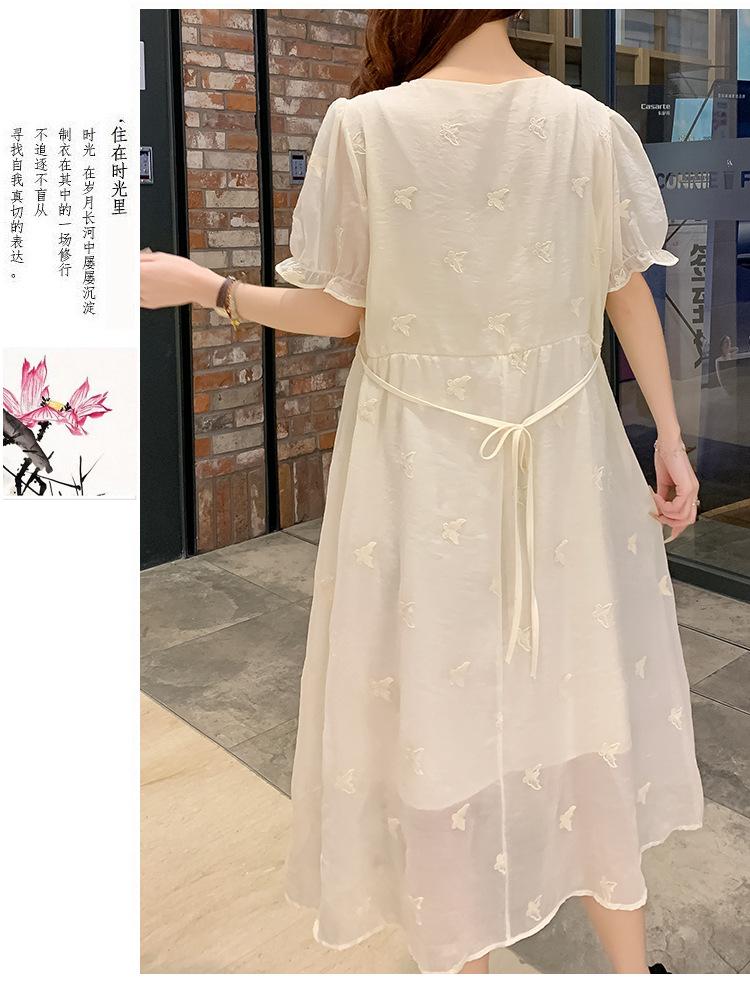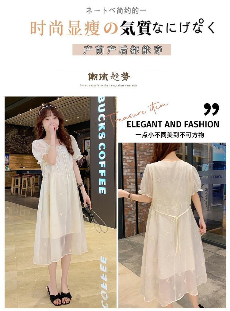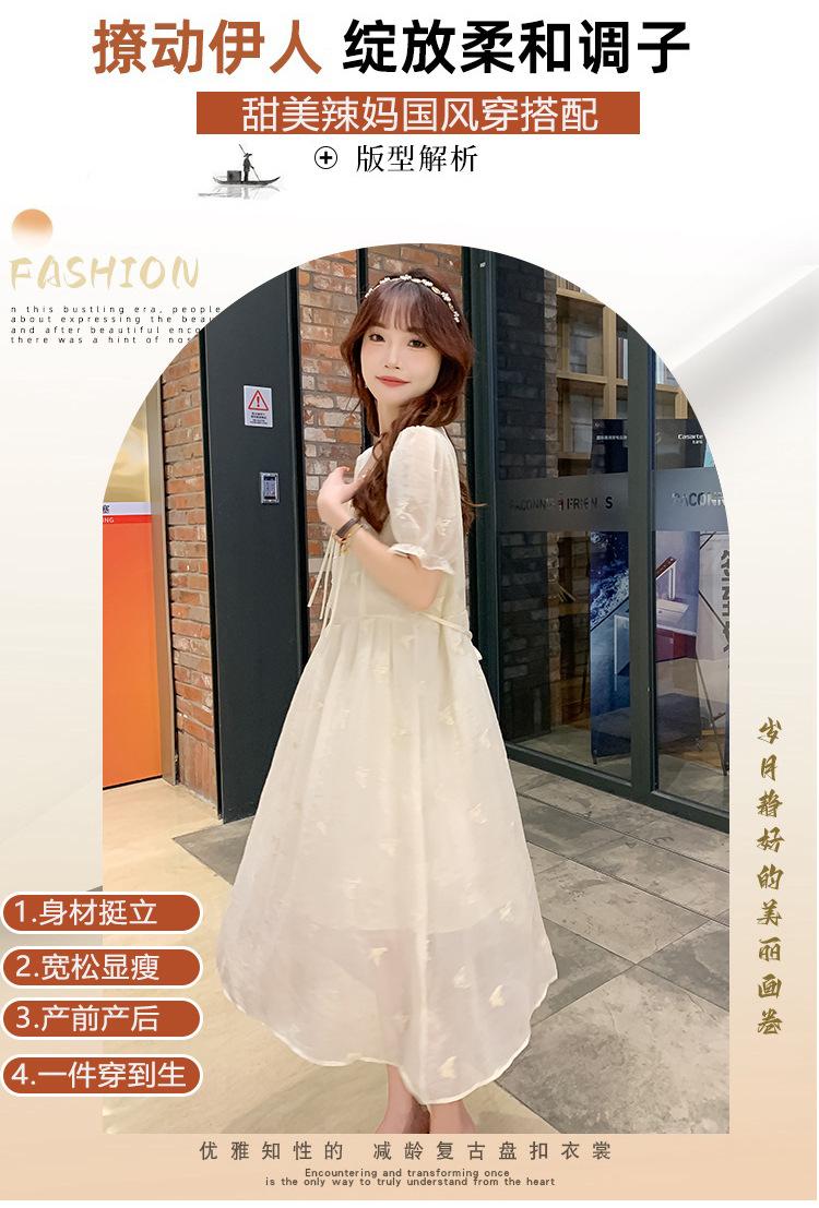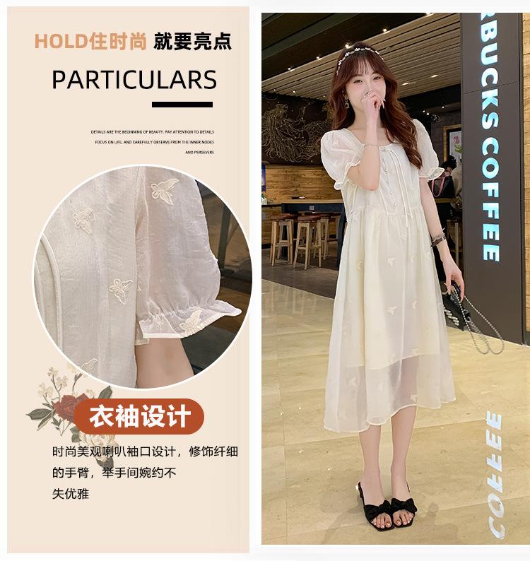 Vestido largo de maternidad de verano 2024, nuevo estilo chino, informal, de talla grande, de malla, dulce y holgado, para embarazadas.