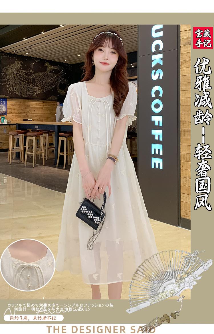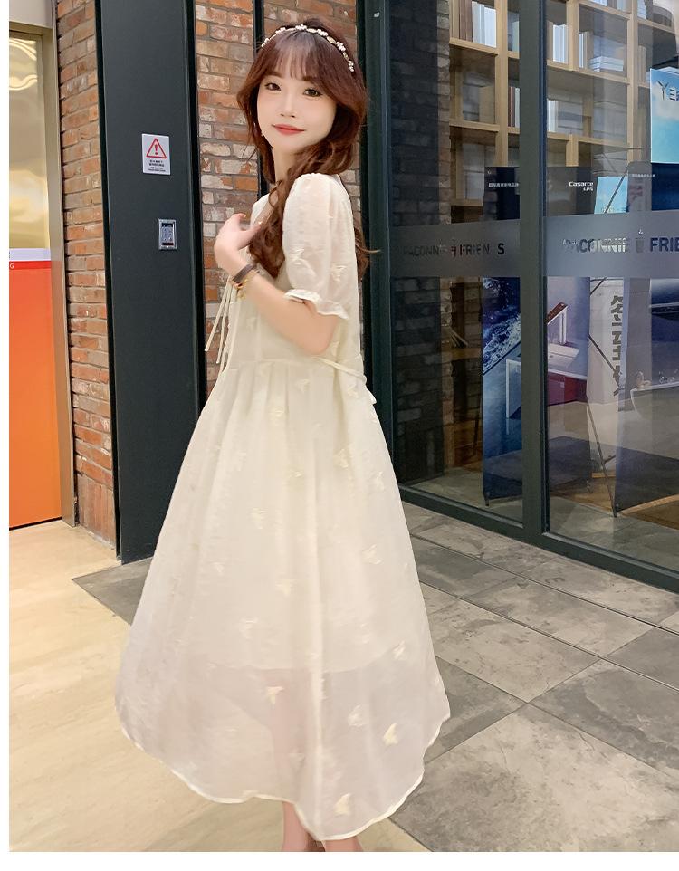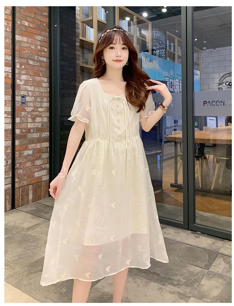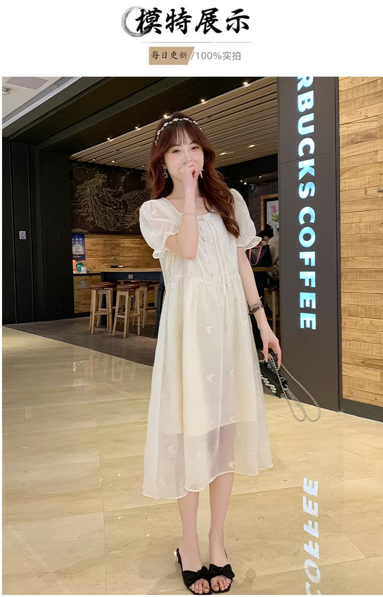 Vestido largo de maternidad de verano 2024, nuevo estilo chino, informal, de talla grande, de malla, dulce y holgado, para embarazadas.