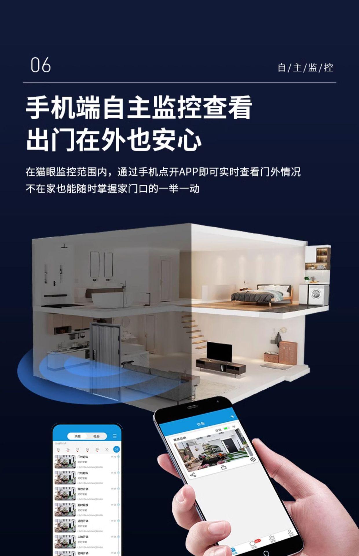 W80 presents lock body [3D face recognition visual cat's eye Wife monitoring capture] for door-to-door installation