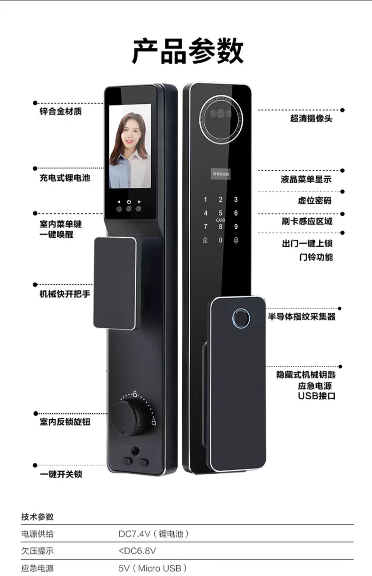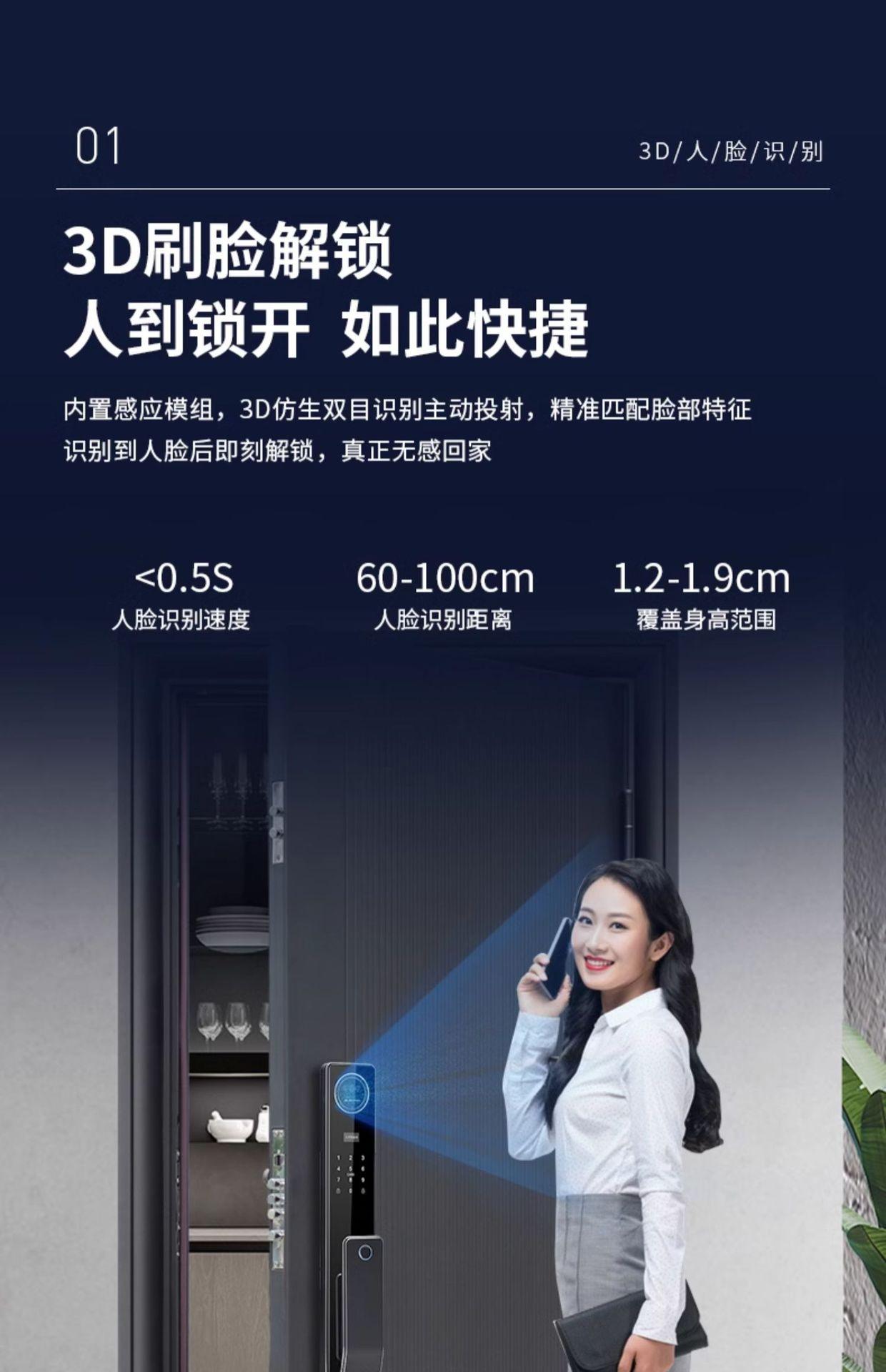 W80 presents lock body [3D face recognition visual cat's eye Wife monitoring capture] to guide installation