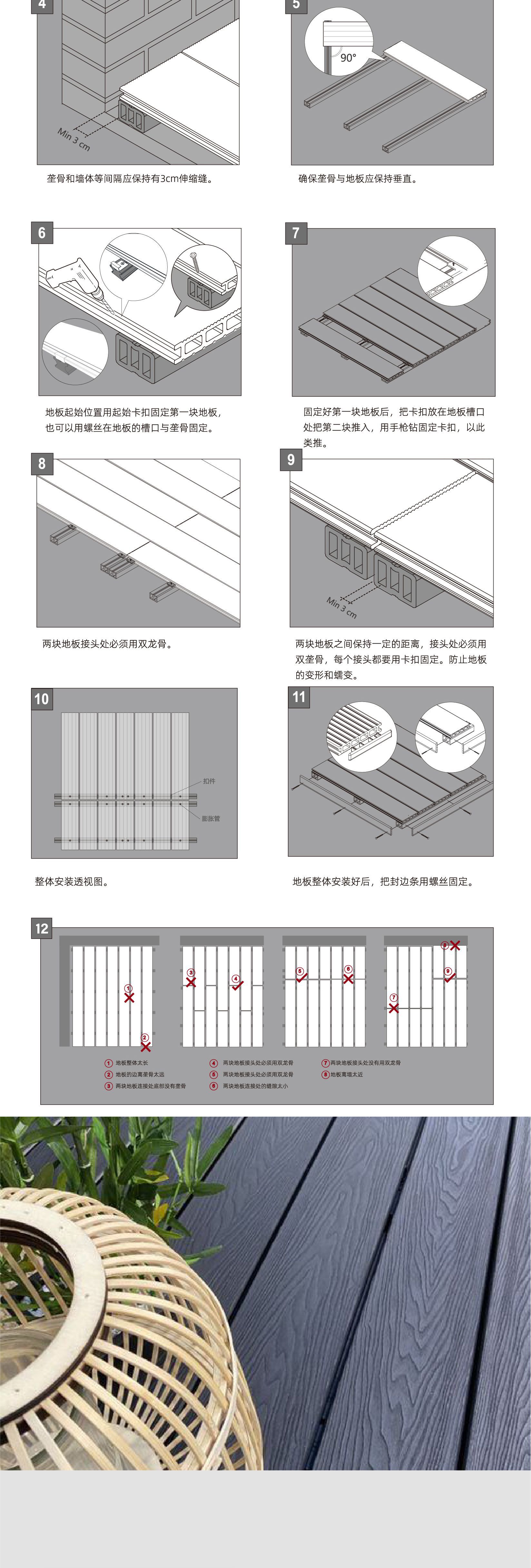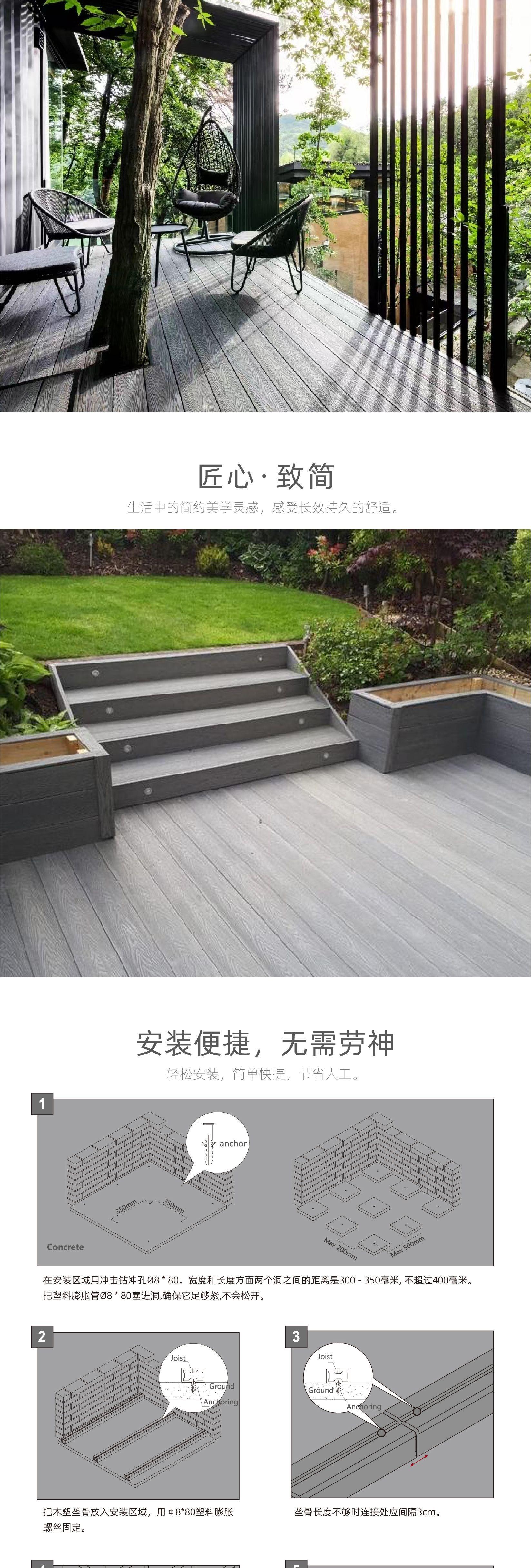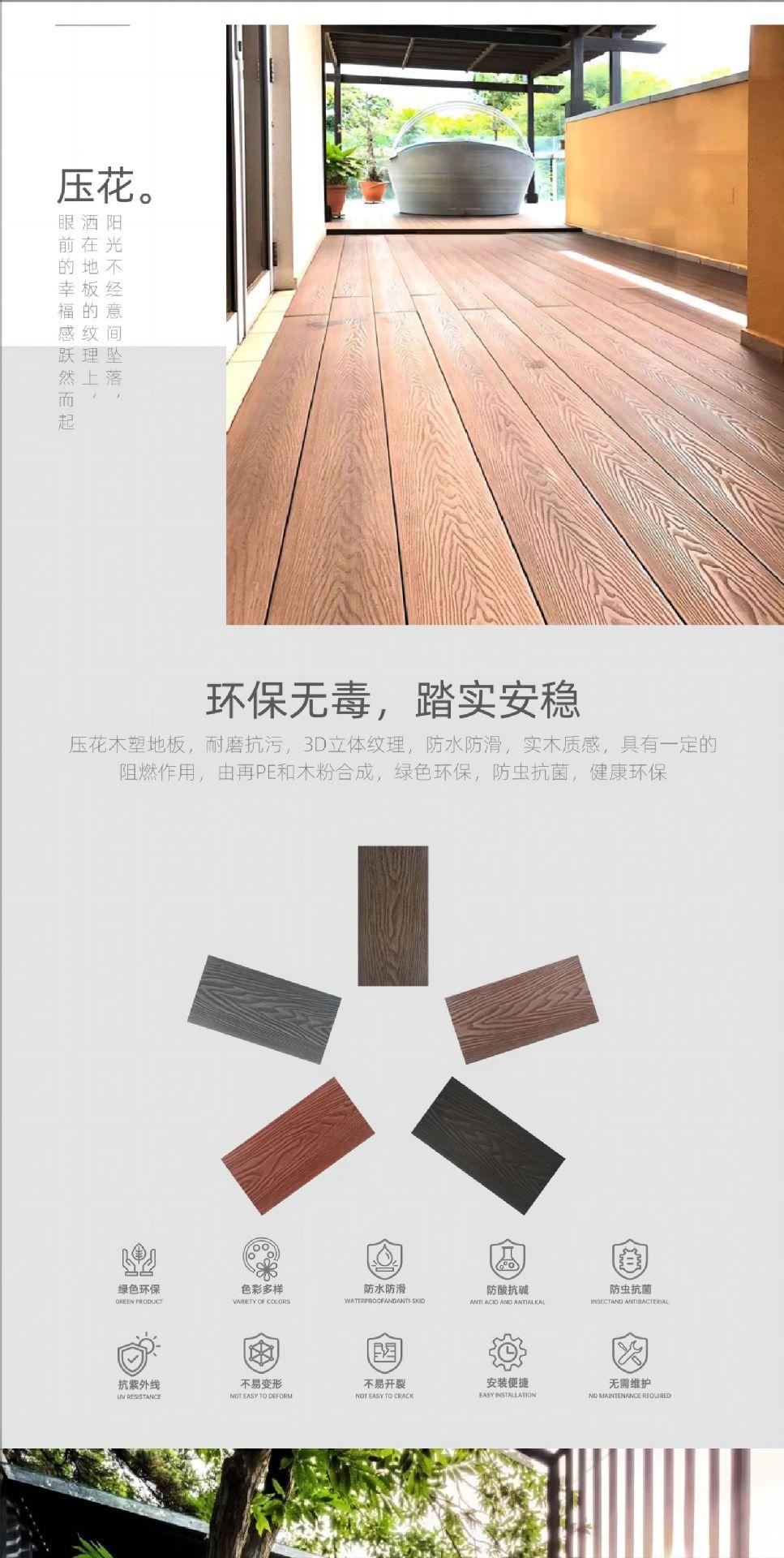 Suelo de madera y plástico para exteriores con relieve 3D de grano de madera, para balcón, jardín, patio, villa, tablones de madera y plástico, suelo compuesto