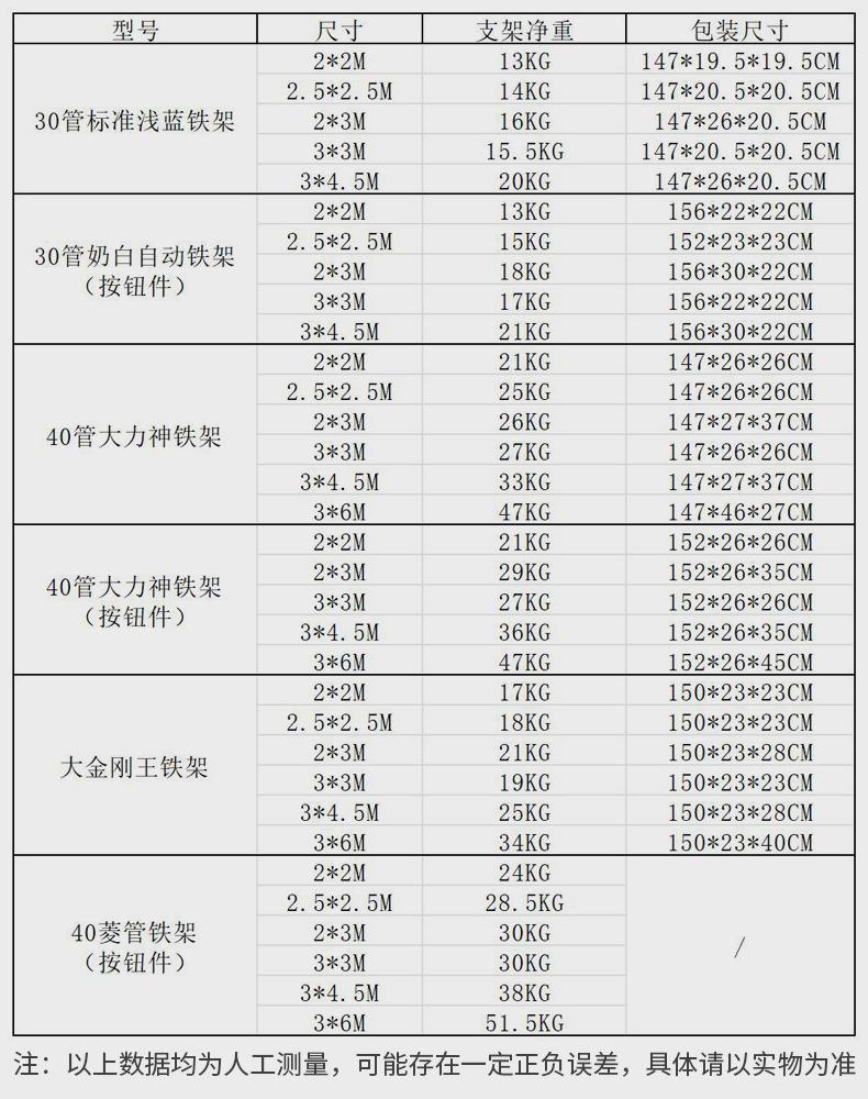30 square tube standard light blue iron frame + 420d cloth top (blue, red), 30 square tube milk white automati...