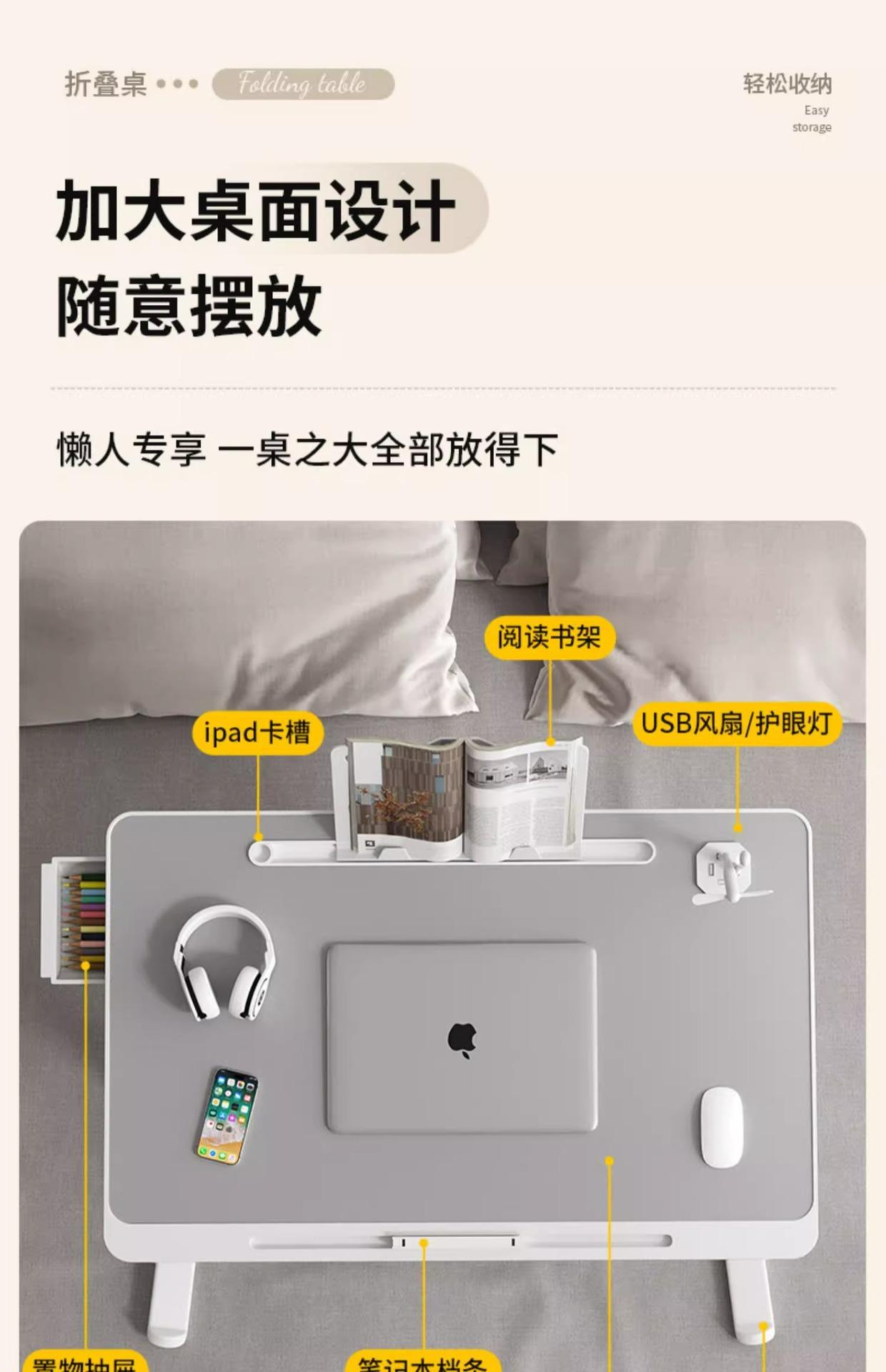 Cama Elevable Plegable Mesa Pequeña Escritorio de Estudio para el Hogar Mesa Pequeña Sencilla para Dormitorio de Estudiantes Mesa de Computadora Portátil