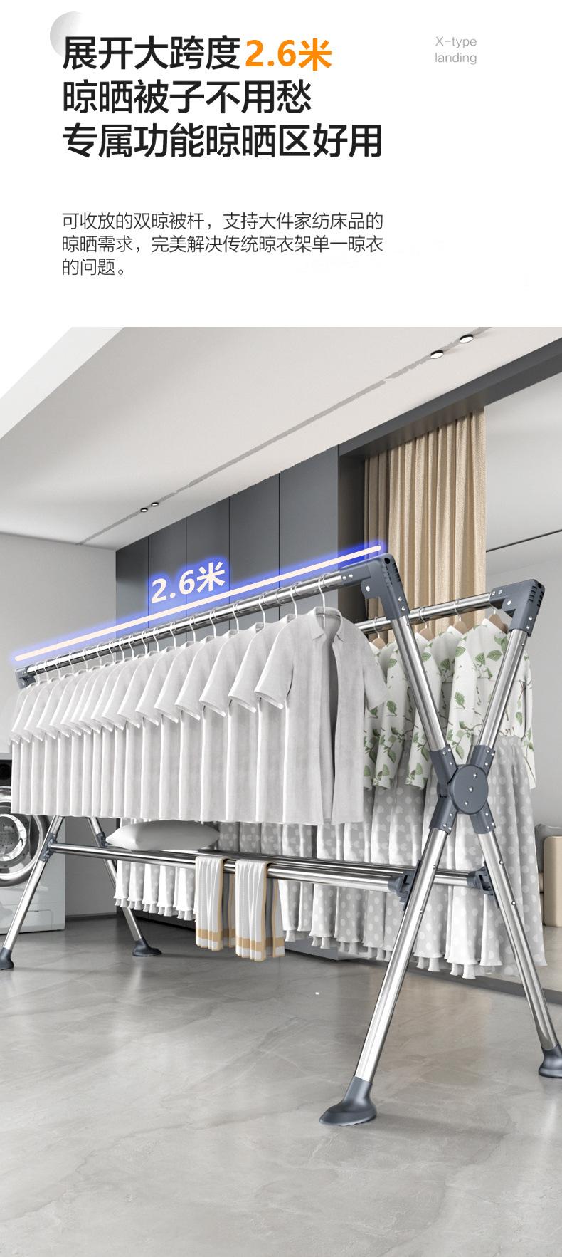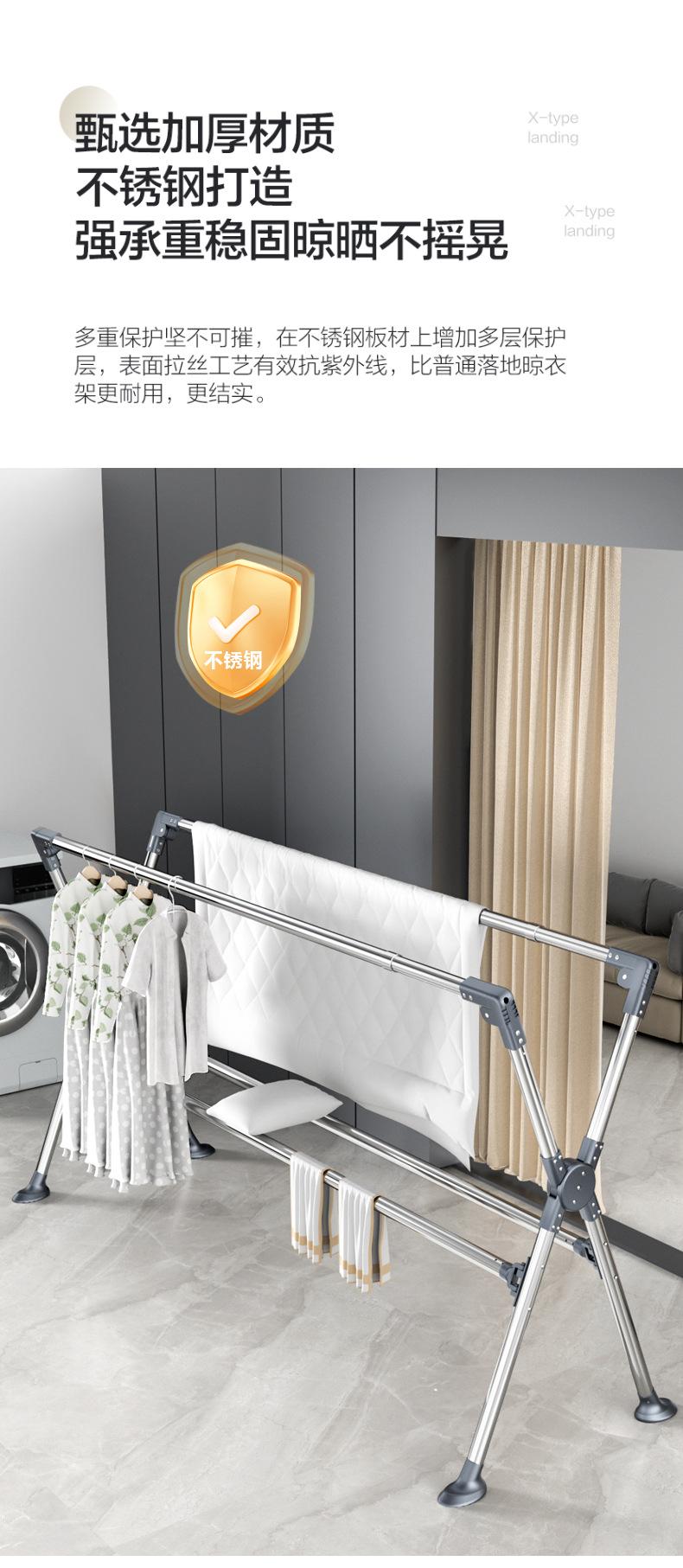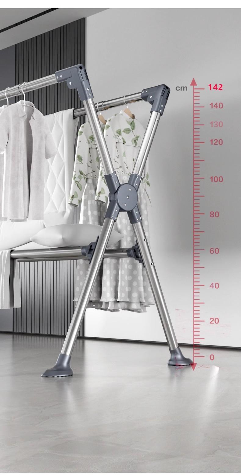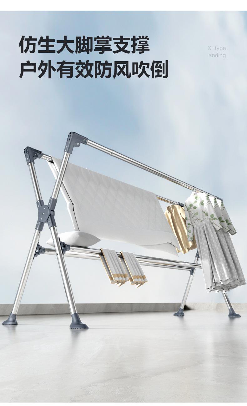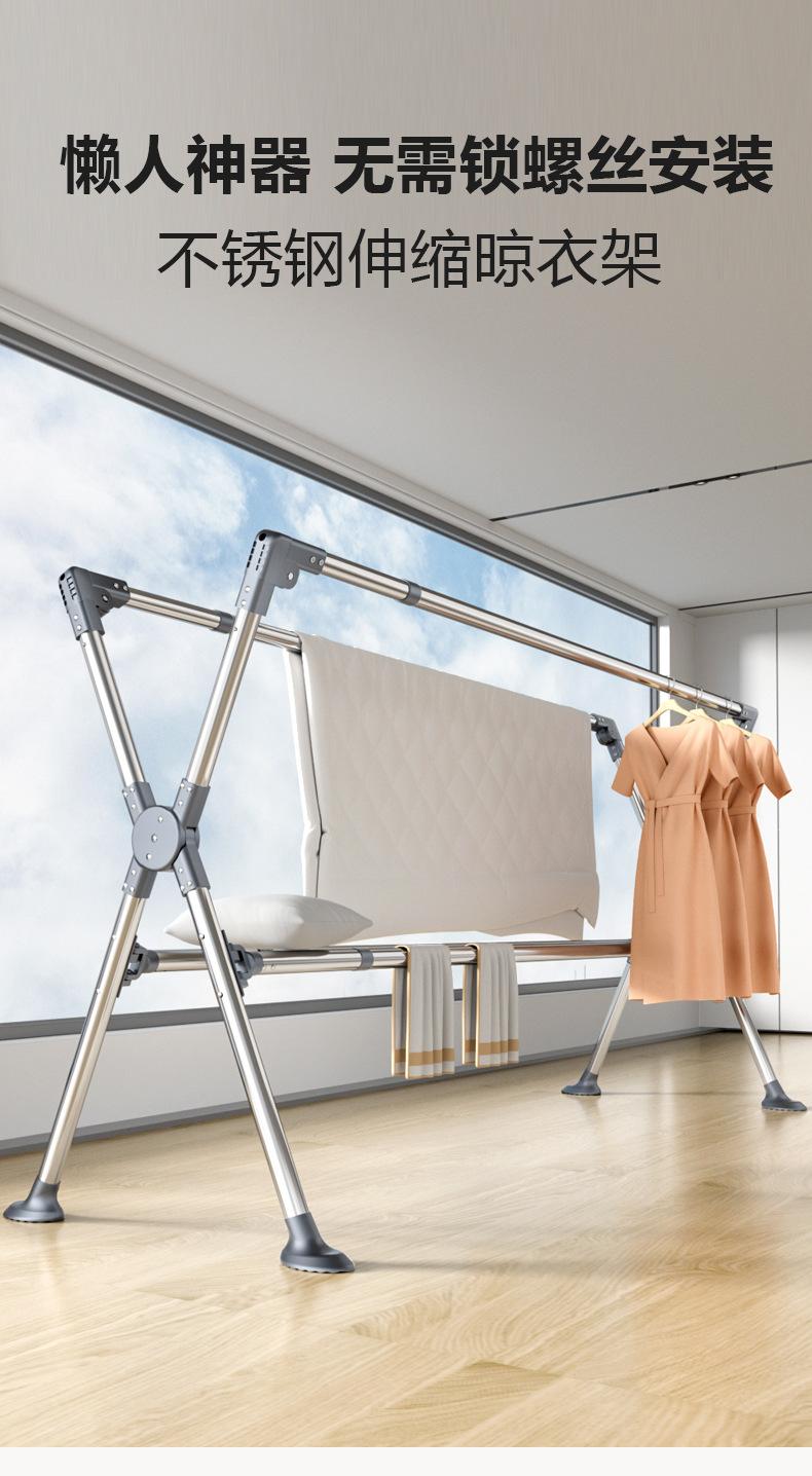 Tendedero plegable de acero inoxidable para ropa de pie para interiores, hogar, balcón, barra para secar ropa, tendedero telescópico para exteriores, tendedero para edredones