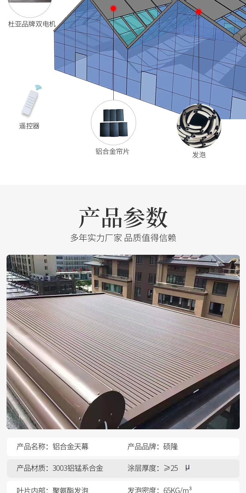 Aleación de aluminio toldo solárium cortina parasol techo parasol sombreado inteligente eléctrico protector solar aislamiento térmico