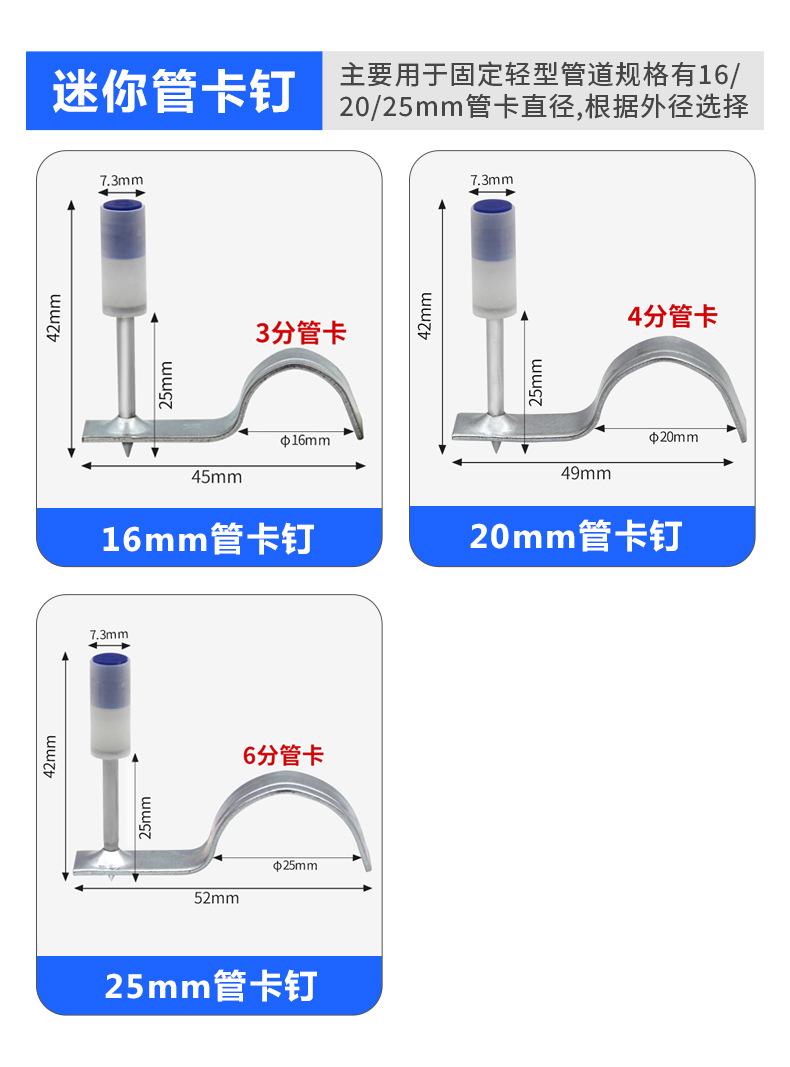 Clavos para pistola, Clavos integrados para techo, Miniclavos, Abrazaderas para tubería contra incendios de hormigón, Clavos redondos para pistola