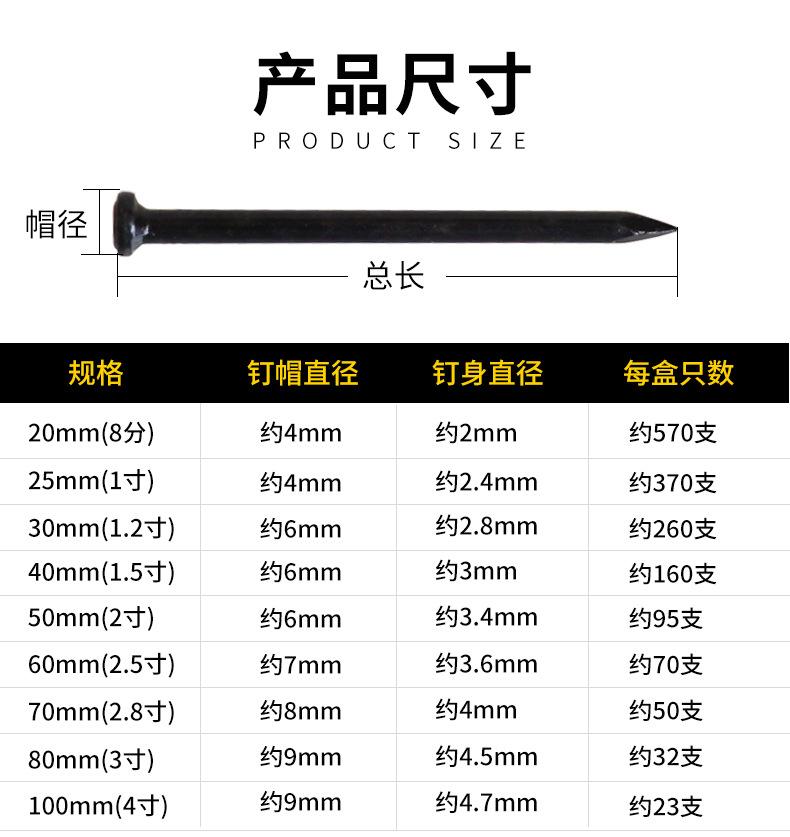 White zinc cement nail set [9 specifications], Cement nail household set [9 specifications], 0.5kg [plastic ha...
