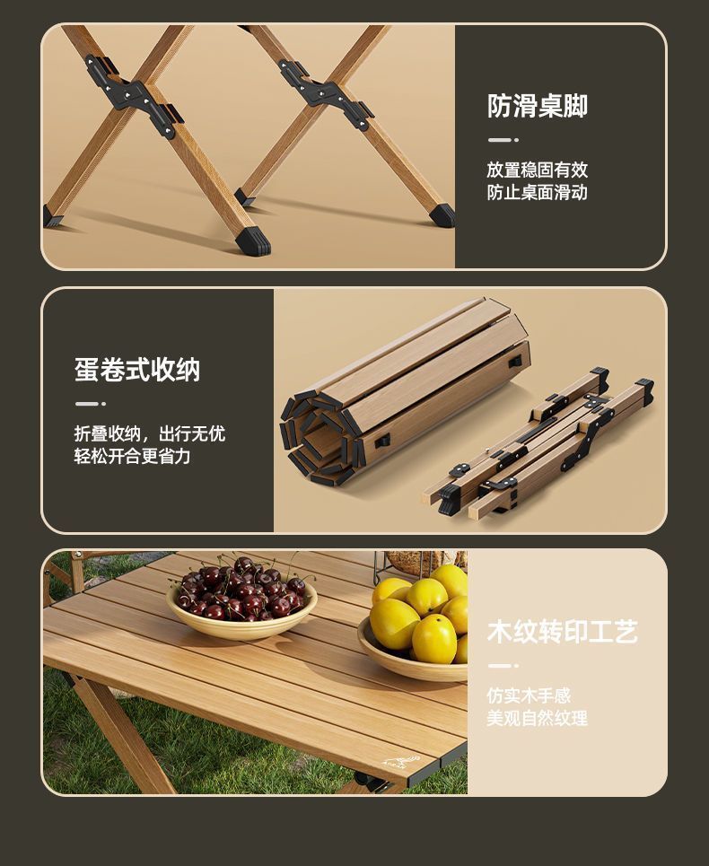 Juego de mesa y silla plegable para exteriores mesa enrollable tipo huevo playa portátil camping mesa y silla picnic de ocio camping traje completo