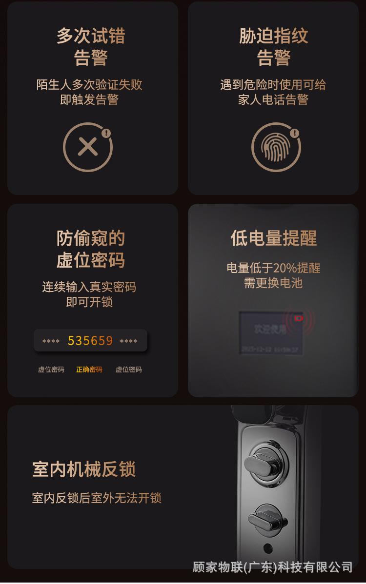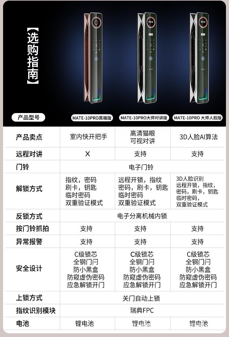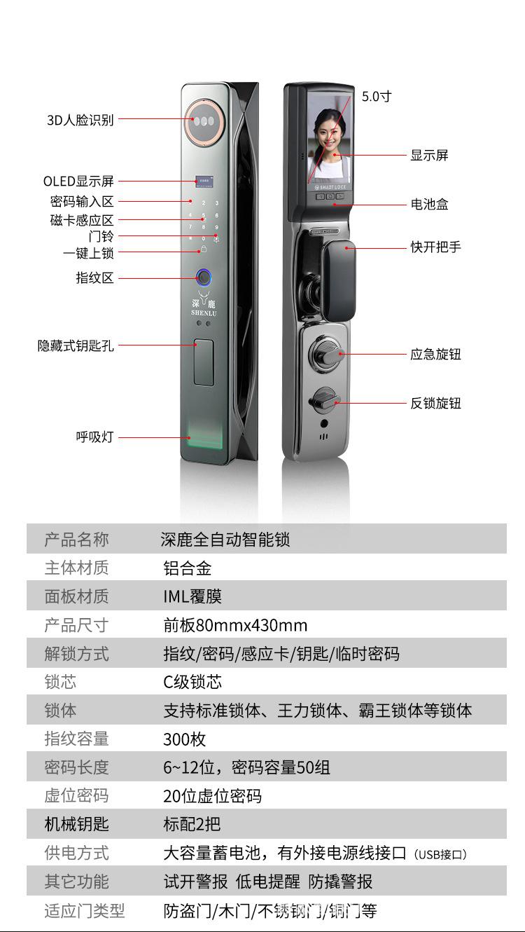 Fingerprint, Password, With key, visible cat's eye, face recognition, No opening, Remote Unlock