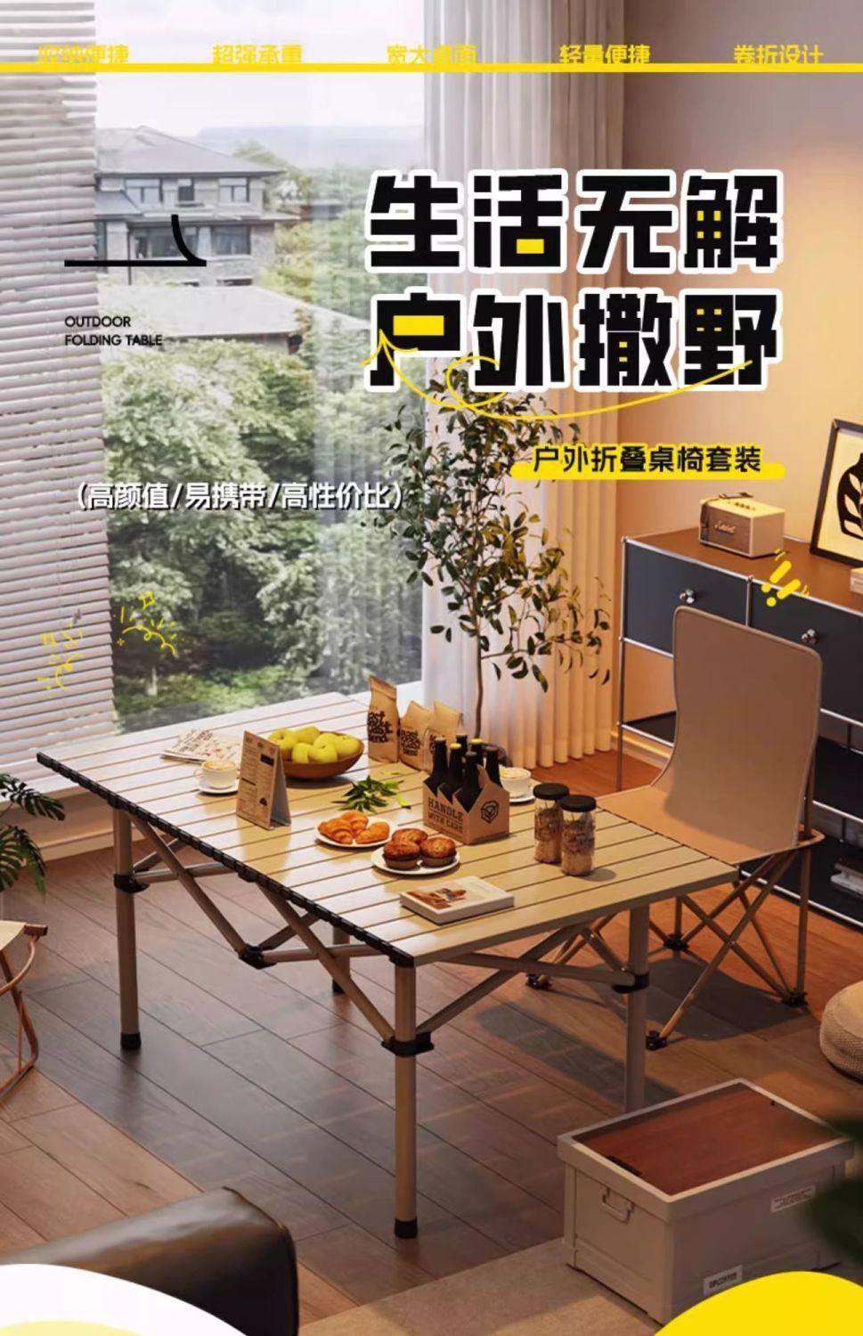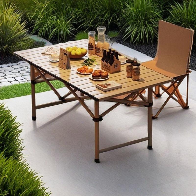 Paquete de Mesa Plegable Portátil para Picnic de Camping con Puesto de Barbacoa y Tour Autónomo de Rollitos de Huevo al Aire Libre