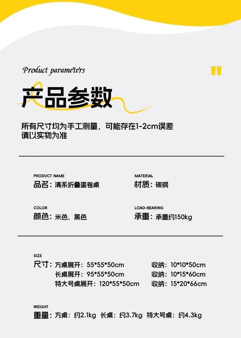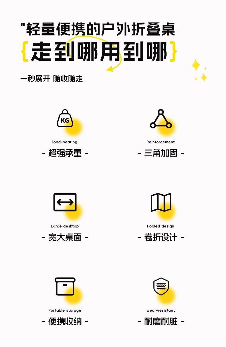 Camping folding table sand yellow [55 square meters single table], Camping folding table elegant black [55 squ...