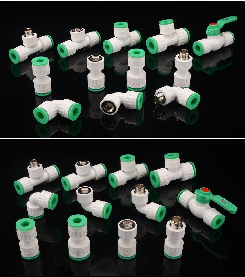 Tubo PPR solar unión aluminio plástico conexión rápida calentador de agua 4 puntos rosca interior y exterior tee codo directo accesorios válvula de bola