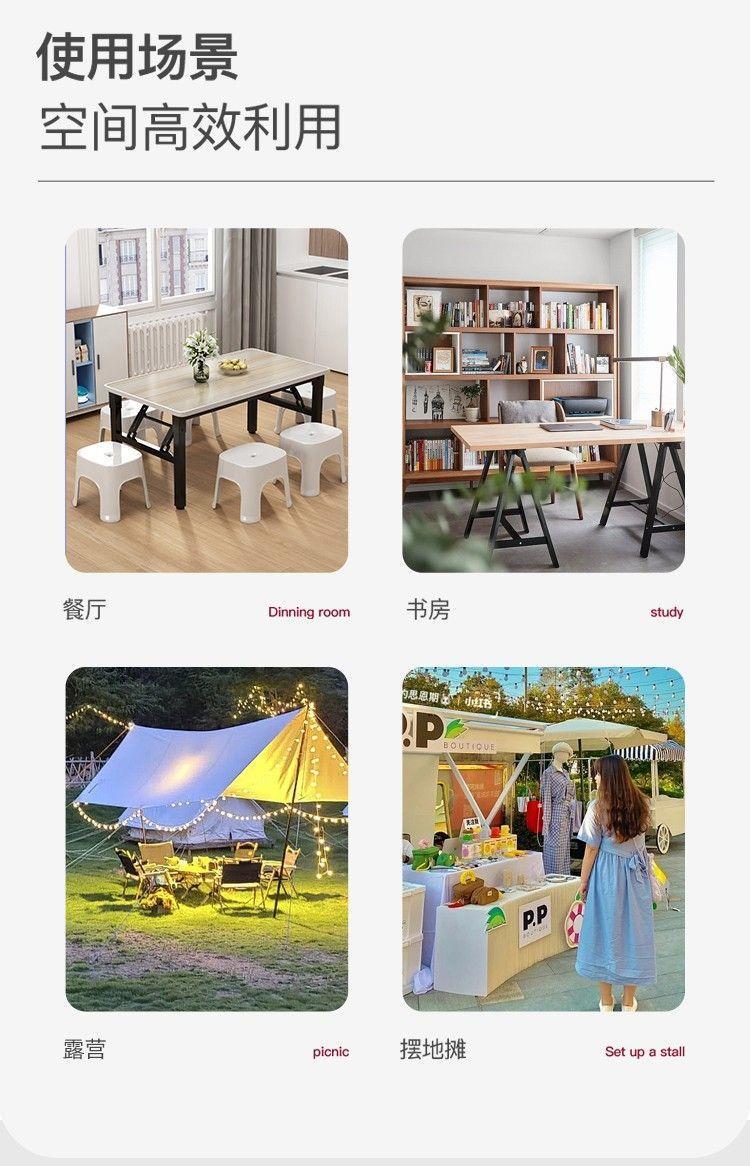 Apple wood color + folding black legs [short model height 53cm], White stone pattern + folding black legs [sho...