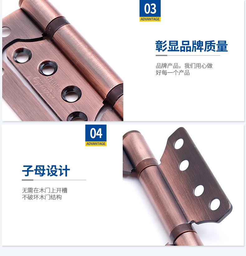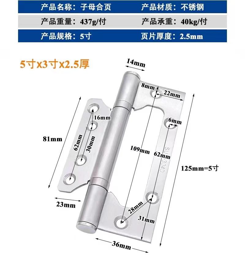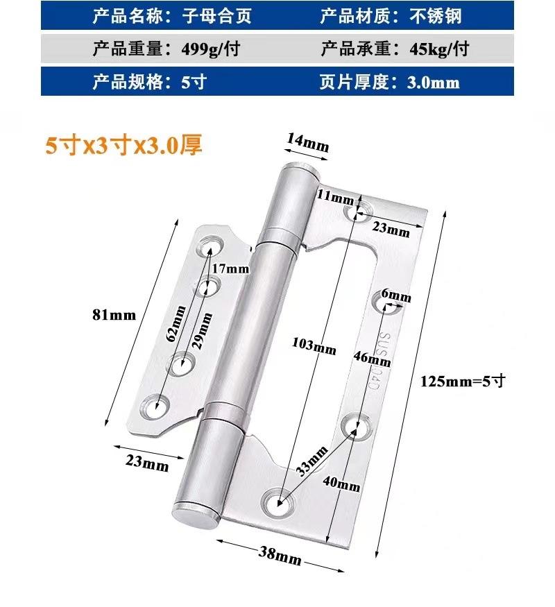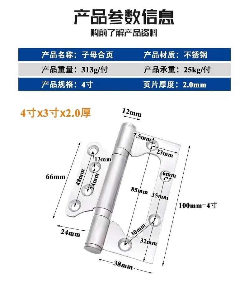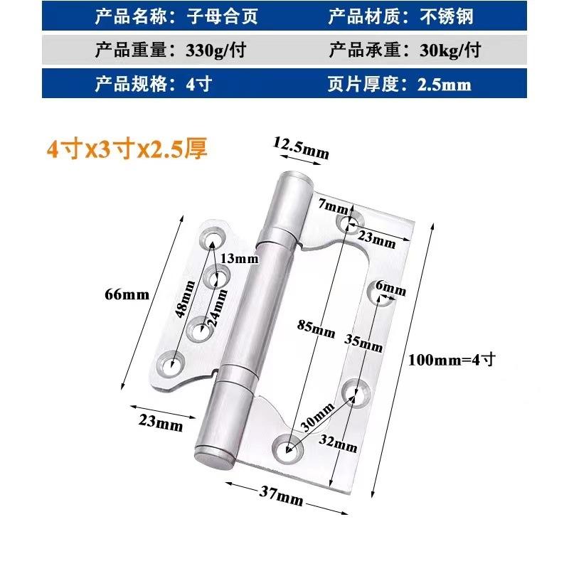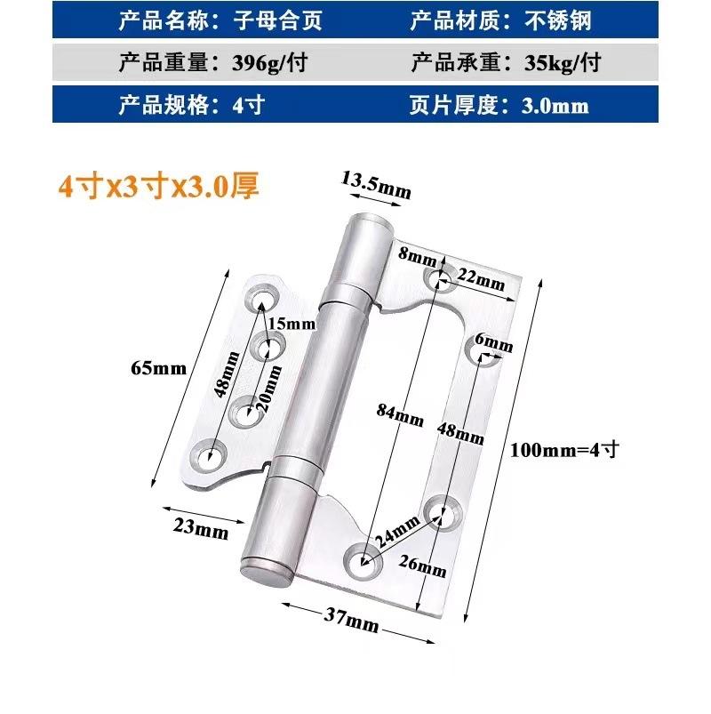 Bisagra de acero inoxidable 304 bisagra madre-hija dormitorio puerta de madera sin ranura rodamiento silencioso bisagra de 4 pulgadas venta al por mayor de bisagras