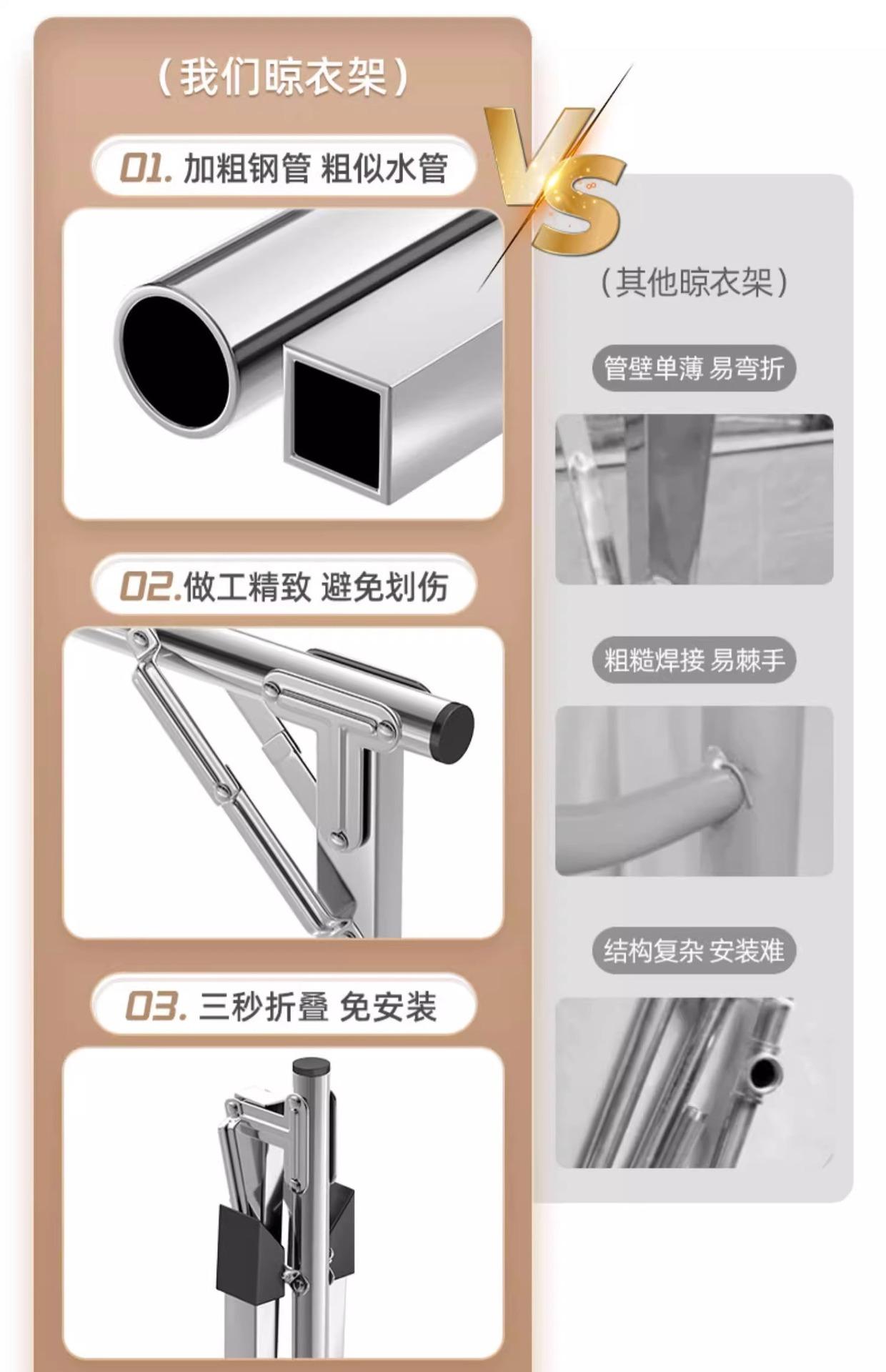 Tendedero plegable de acero inoxidable de piso para interior y exterior, balcón, dormitorio, tendedero doméstico, barra para ropa, tendedero para edredón
