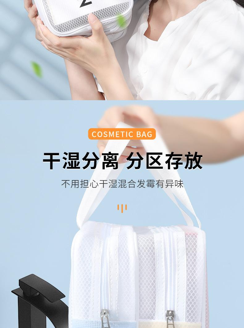 Nueva bolsa de cosméticos de gran capacidad, separada para ropa seca y húmeda, para mujer, bolsa de almacenamiento de cosméticos portátil, bolsa de lavado de viaje impermeable para fitness