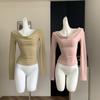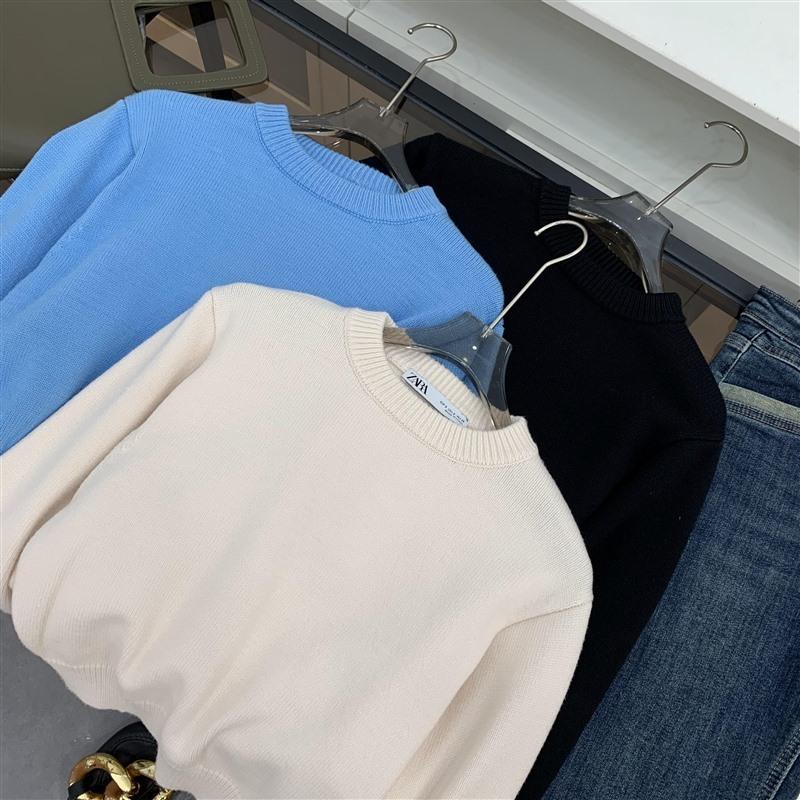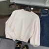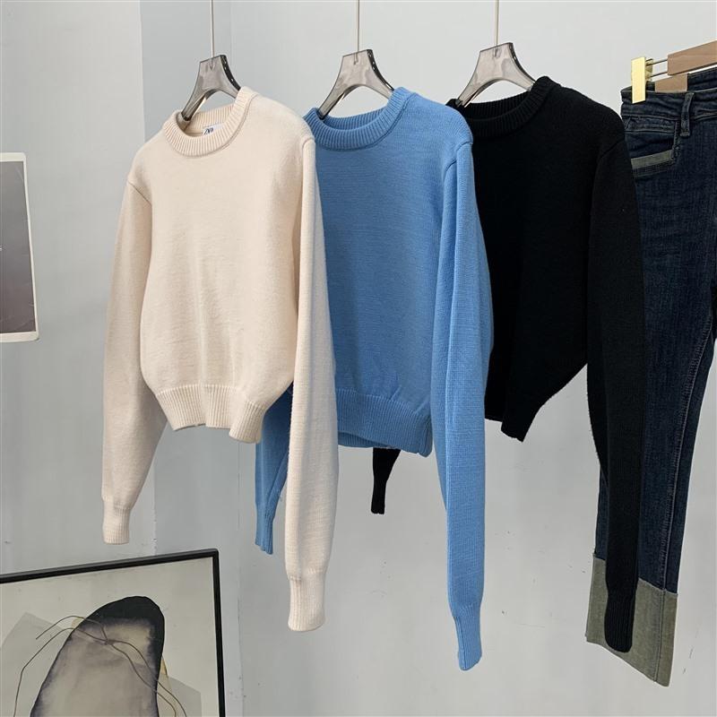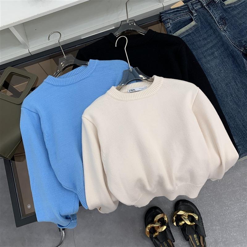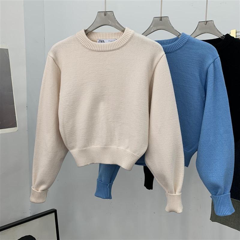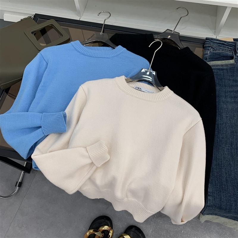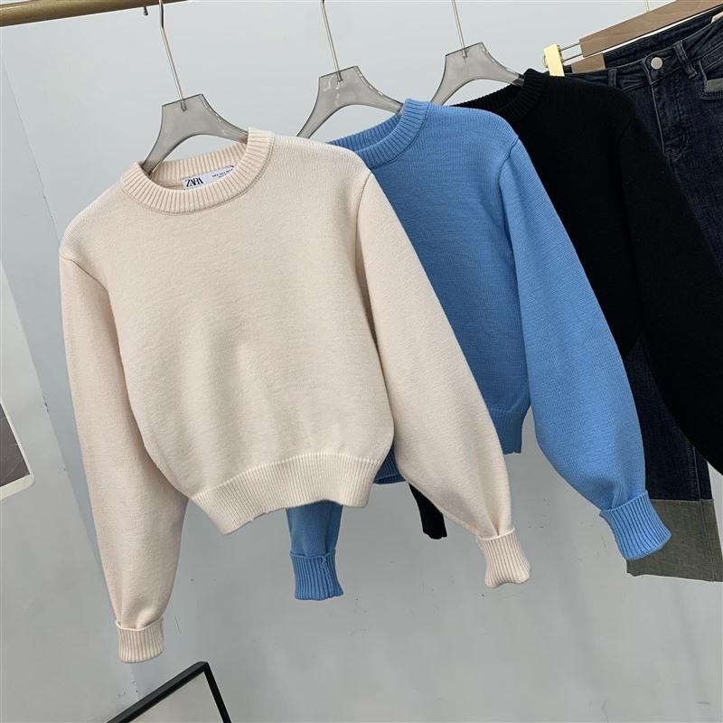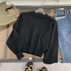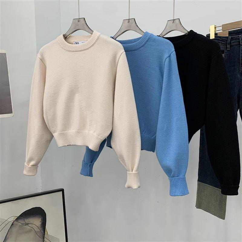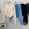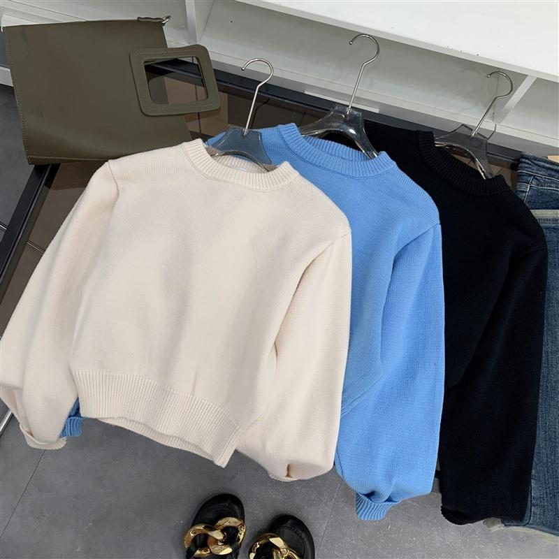 Suéter Casual Holgado Delgado de Cintura Ajustada Color Sólido Cuello Redondo Coreano Pulóver de Manga Farol Top de Punto I#10